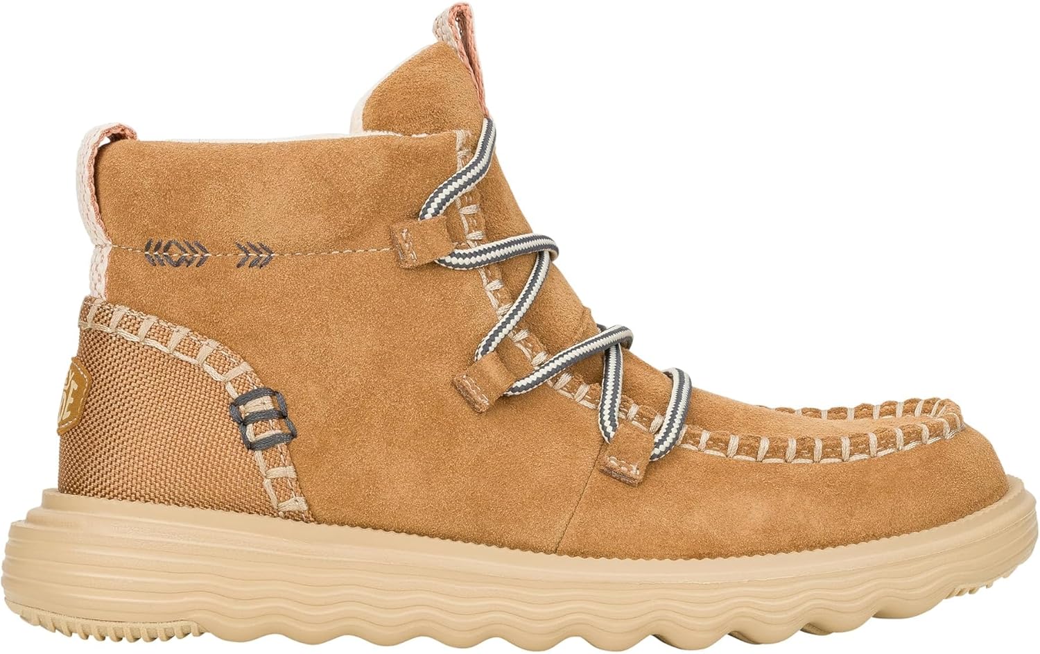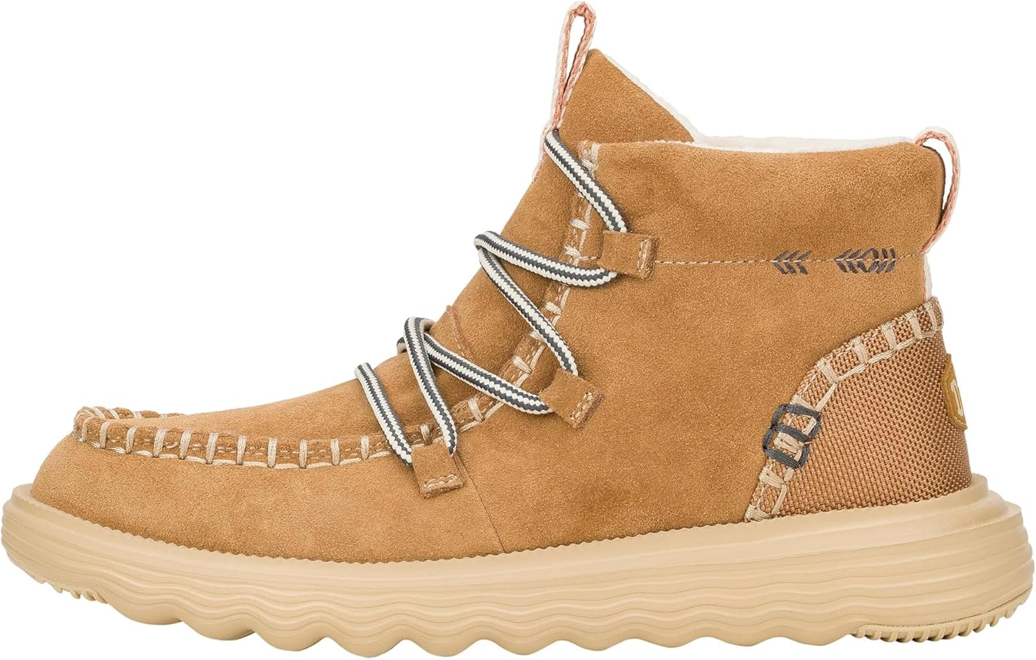 Выделяйтесь своим утонченным стилем, надевая суперкомфортные замшевые ботинки Hey Dude Reyes. Средние по высоте ботинки выполнены из искусственной замши с текстильной подкладкой и стелькой из этиленвинилацетата для комфорта в течение всего дня. Шнуровка. Передние и задние петли для легкости надевания. Классический округлый носок. Легкая и гибкая резиновая подошва.