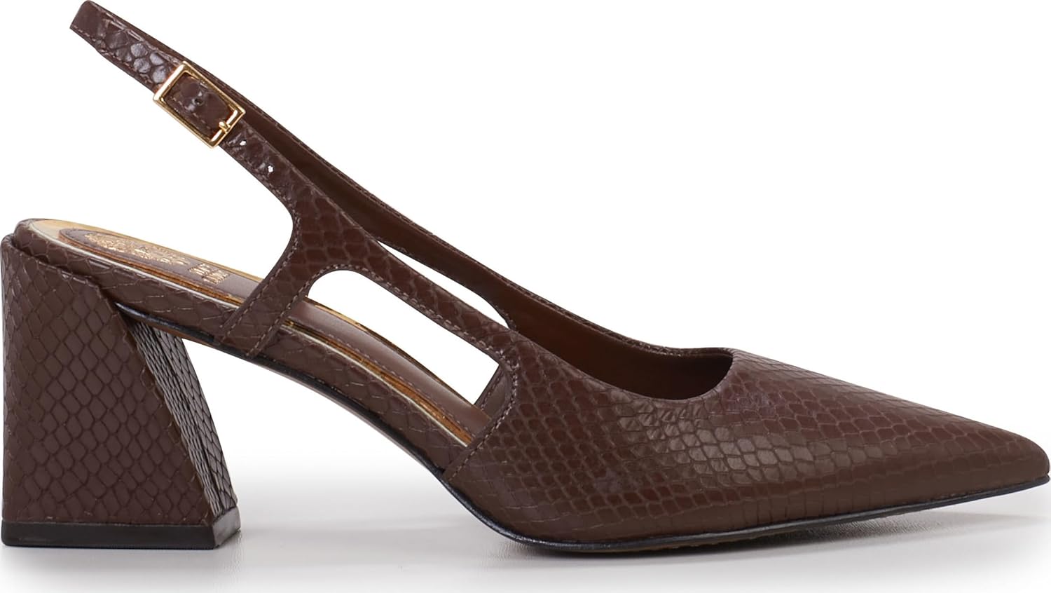 Туфли на среднем каблуке Sindree с ремешком на пятке имеют массивный каблук. Носок заостренный и украшен геометрическими вырезами по бокам. Каблук расширен и покрыт однотонной кожей. Доступны в различных цветах и отделках, эти туфли станут завершением разнообразных нарядов. Мягкая стелька и регулируемый ремешок на щиколотке обеспечивают комфорт.
