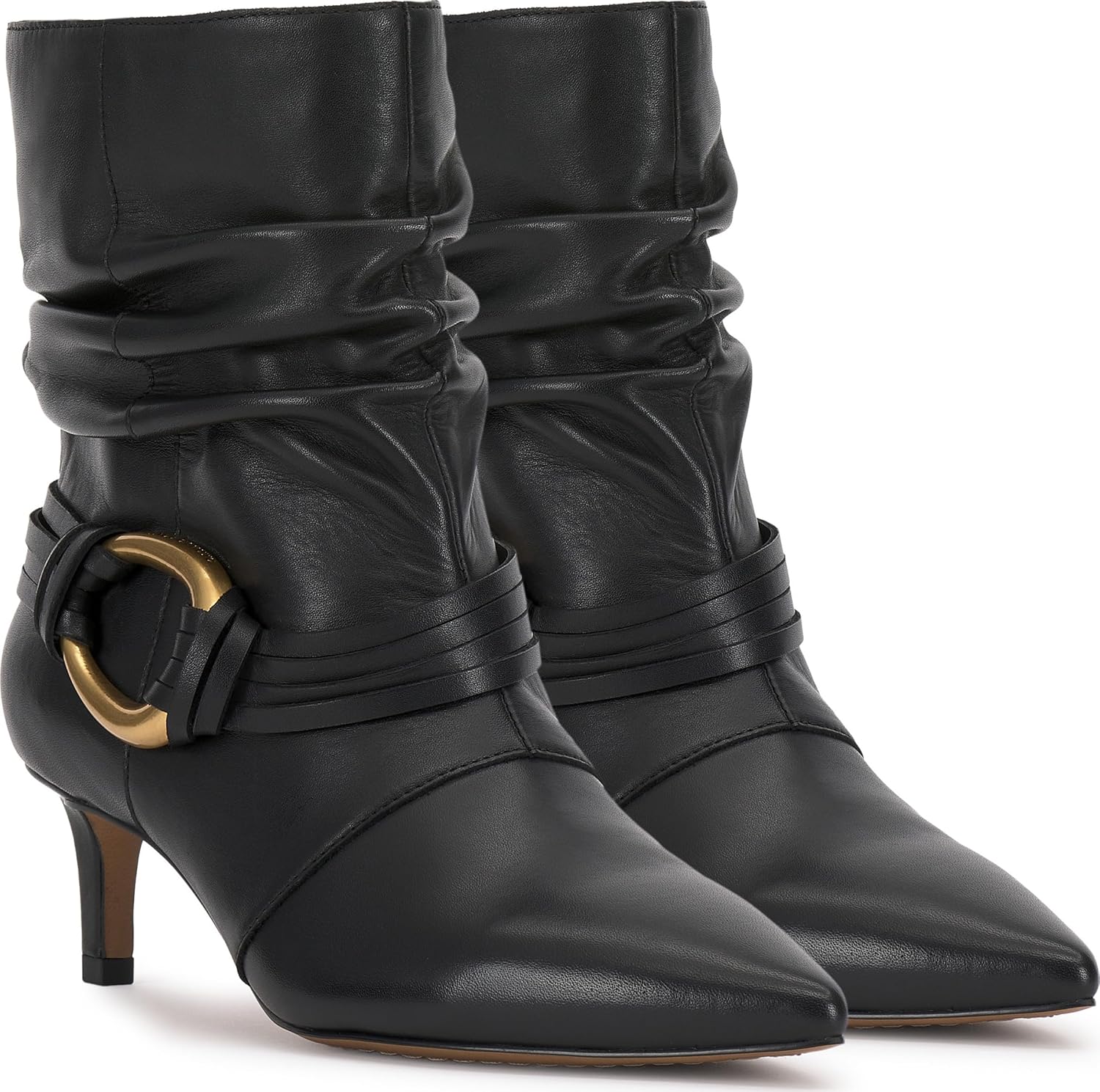 Эта стильная повседневная ботильонка - идеальное сочетание непринужденного стиля и изысканности. Расслабленный силуэт в сочетании с заостренным носком и элегантным невысоким каблуком создает изящный, но при этом повседневный образ. Приметная золотистая круглая пряжка на боку добавляет нотку винтажного шарма, а обернутые замшевые ремешки усиливают бохо-стиль. Идеально сочетается с джинсами, юбками или платьями. Этот универсальный ботинок станет вечным дополнением любого модного гардероба.