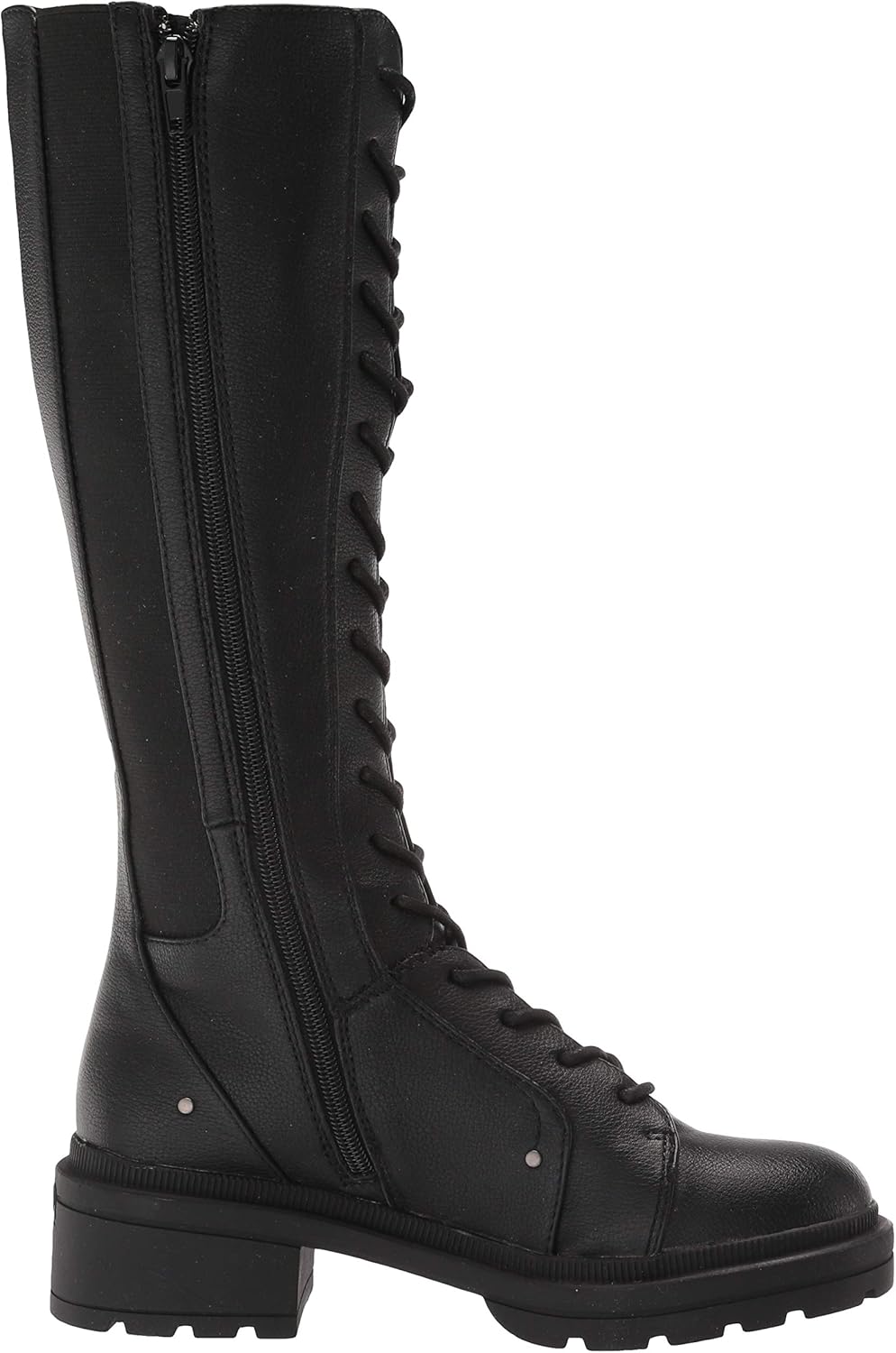 Эти черные ботинки до колена внушают уважение! Заклепки, массивный каблук и прочная коленная голень делают эти ботинки отличным дополнением к вашей коллекции обуви.
