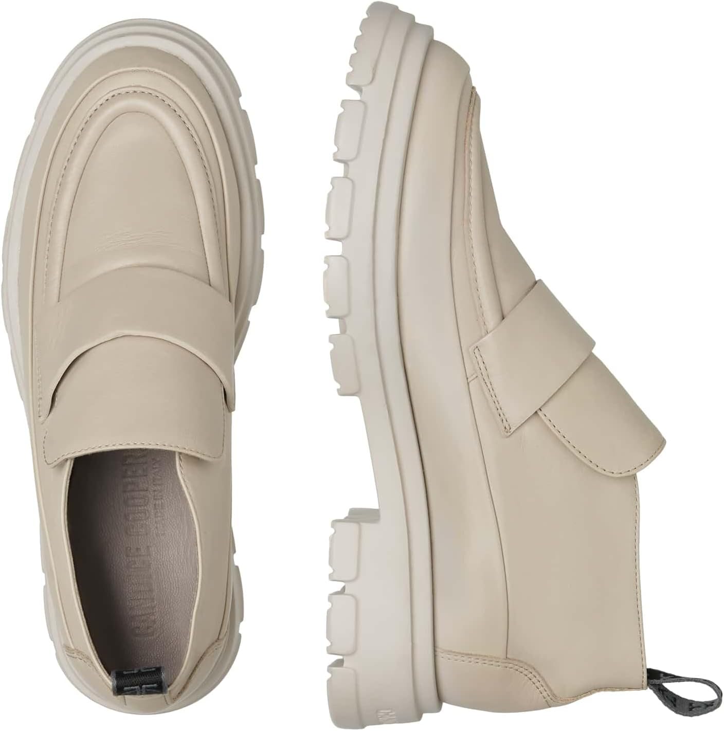 Это креативное сочетание ботинка до щиколотки и городского мокасина: обувь выполнена из мягкой кожи наппа и имеет классические детали в стиле мокасин. Легкая резиновая подошва с двойным рантом и высоким протектором, вдохновленным боевой обувью. Ее легко носить благодаря петле с логотипом на пятке и эластичному входу под язычком.