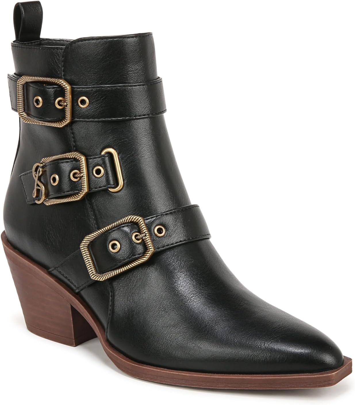 Модель Finnley - это ваша универсальная обувь на все сезоны с тройным креплением, средней посадкой, уникальным квадратным носком и изогнутым средним каблуком.