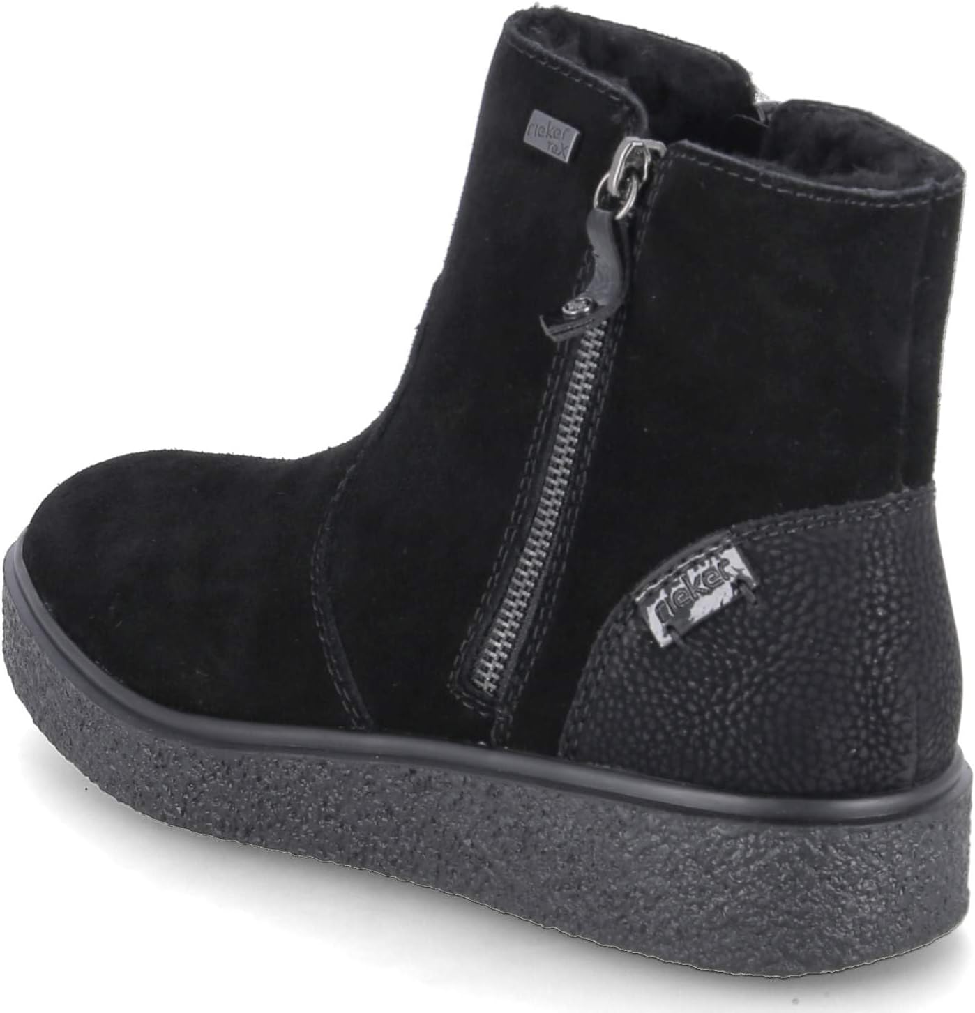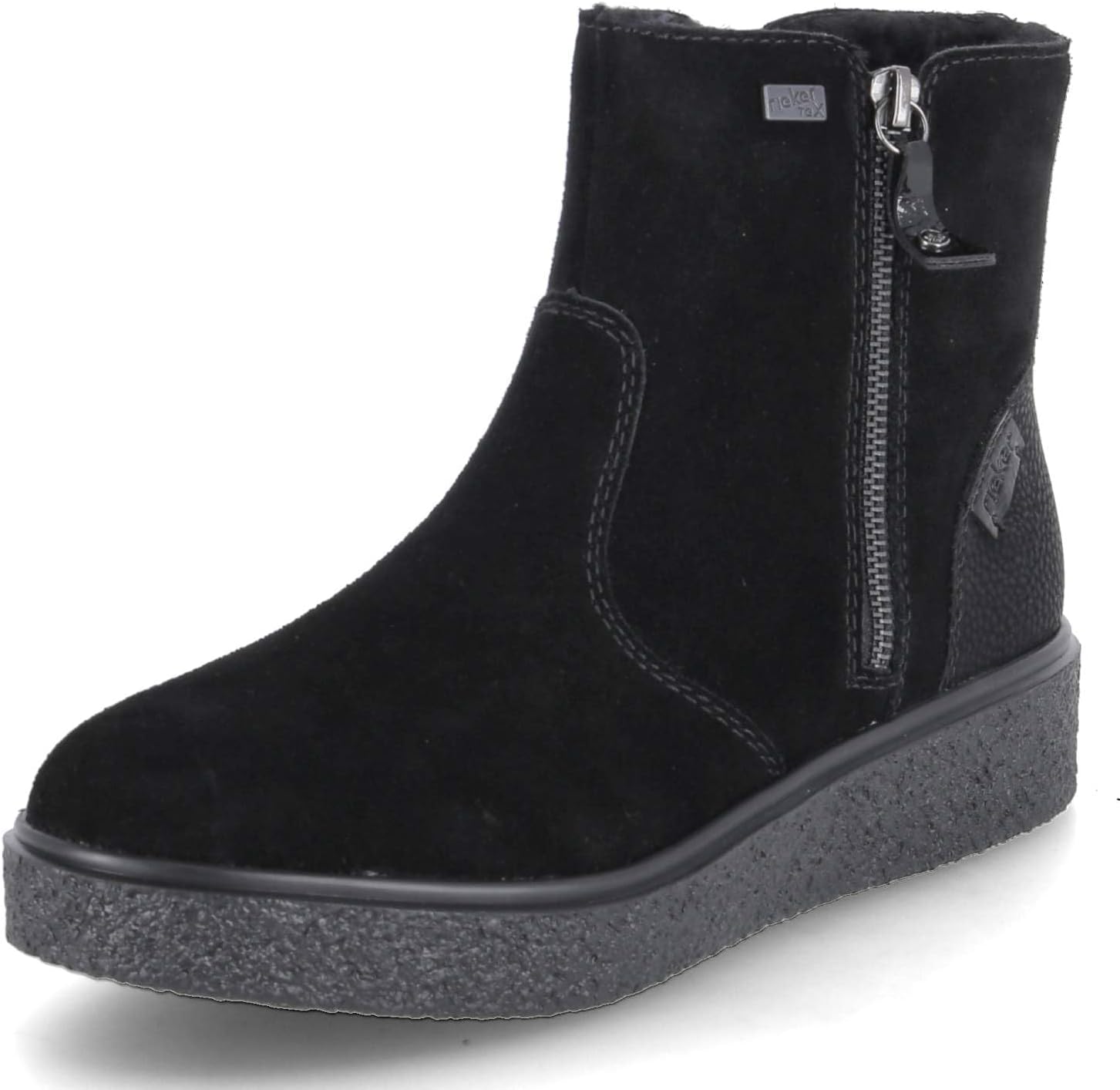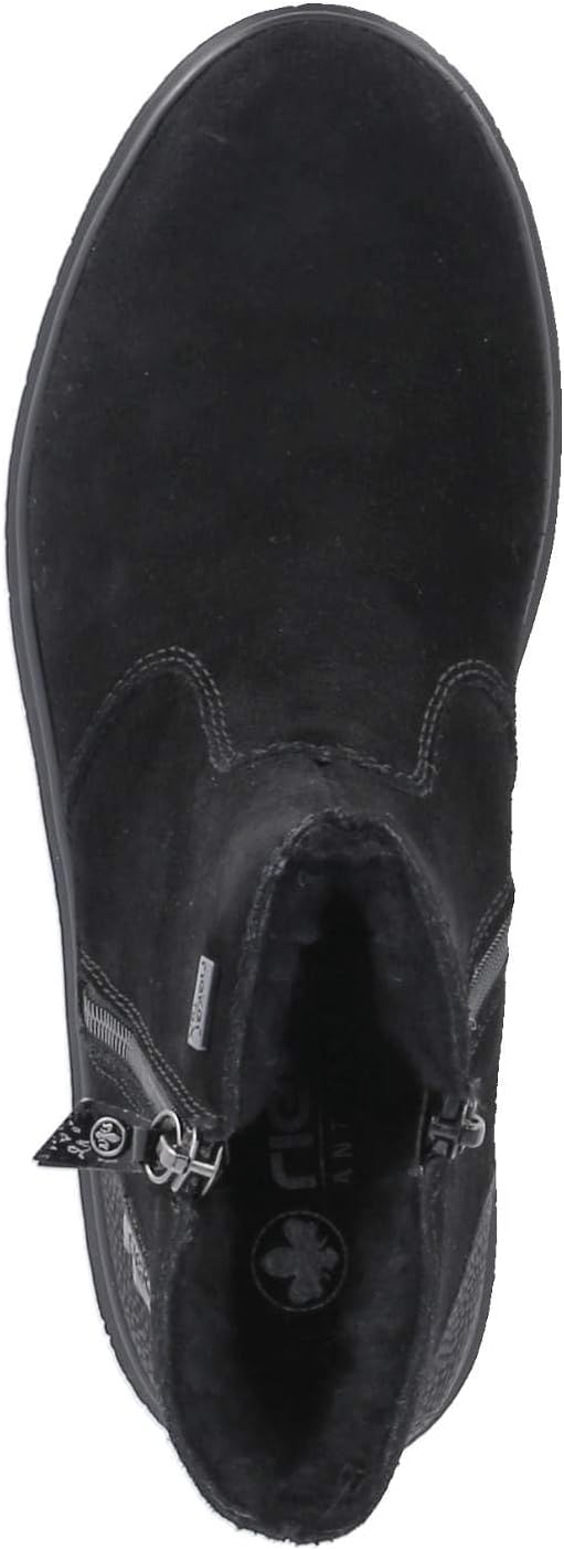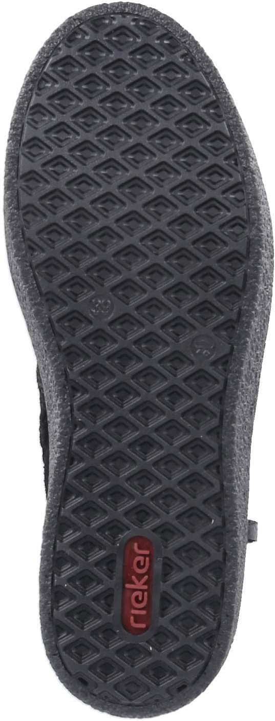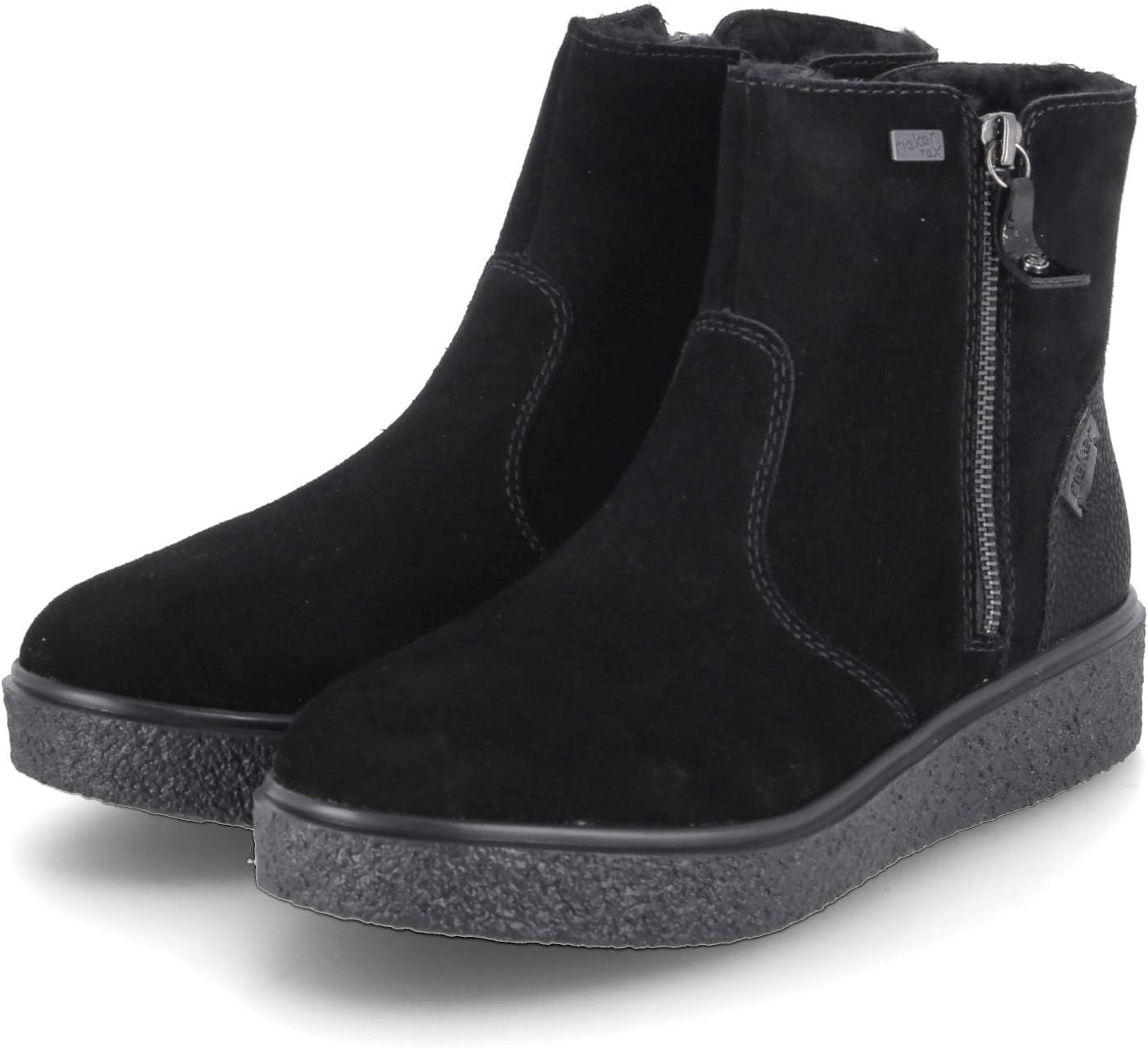 На FashionRadar с этими короткими ботинками Rieker цвета «полночная чернь» из замшевой кожи слово «холод» кажется чуждым. Благодаря молнии ботинок можно надеть очень быстро. Платформа удобна и обеспечивает хорошее сцепление в любой ситуации. Короткие ботинки также выигрывают благодаря мягкой и съемной стельке. Технология RiekerTEX и теплая подкладка гарантируют отличный комфорт в любую погоду. Что еще можно пожелать?