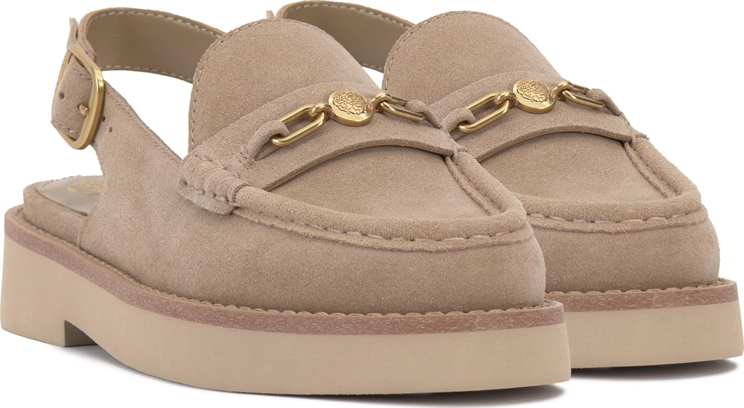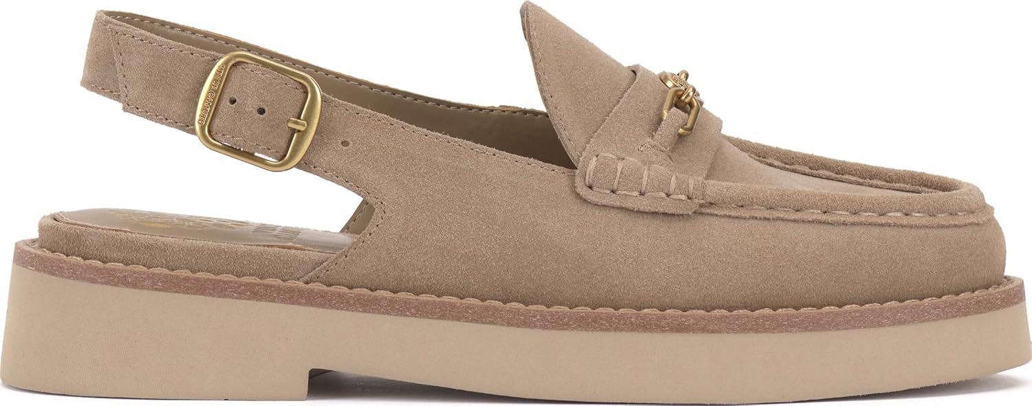 Torrie - это идеальная обувь для переходного сезона. Классический дизайн лоферов спереди с декоративной цепочкой с логотипом и открытой задней частью с ремешком на пятке и регулируемой пряжкой. В ассортименте материалов от мягкой замши до блестящей лакированной кожи каждый сможет найти свою идеальную пару. Дизайн можно даже описать как «деловой спереди и праздничный сзади». Эта обувь оснащена мягкой стелькой и легкой подошвой из резины высотой примерно 3 см.