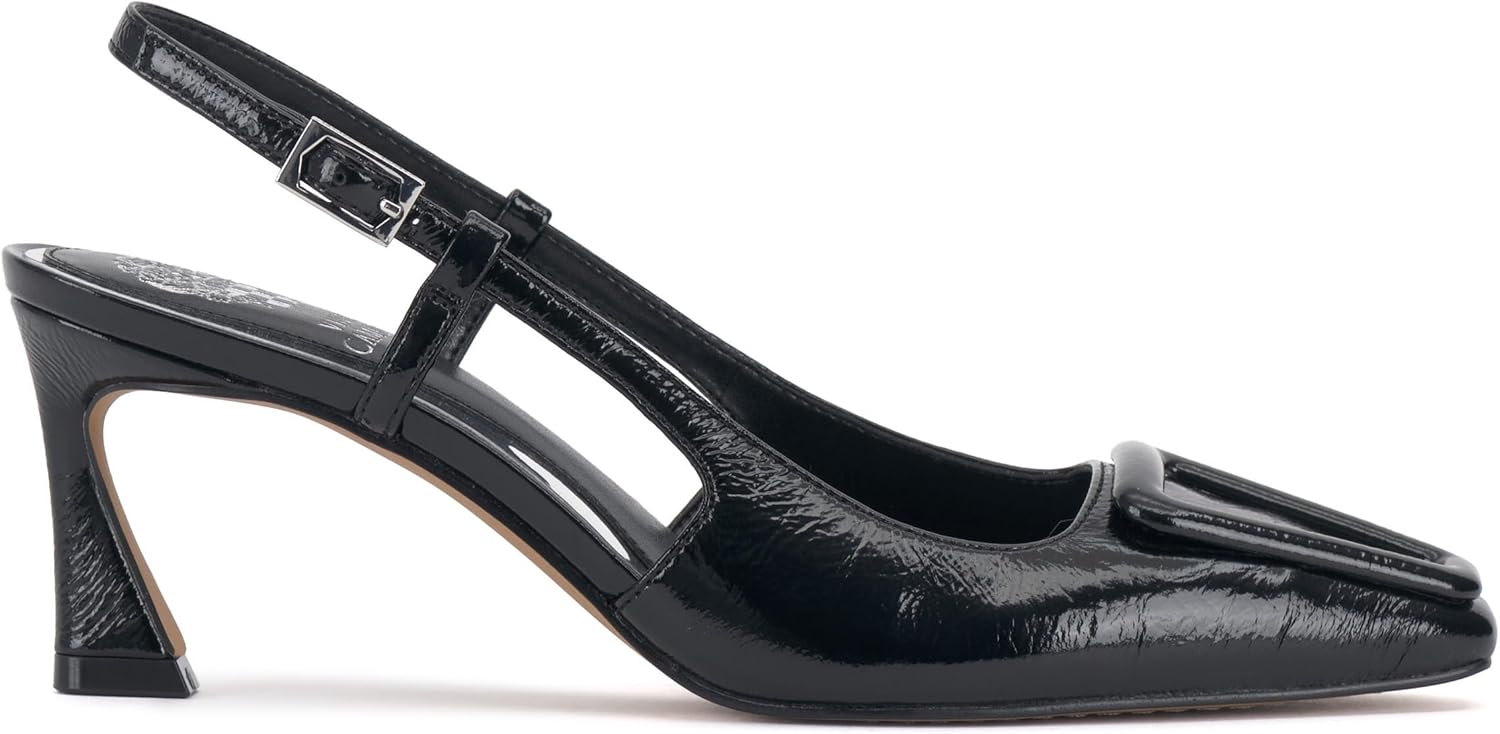 Слингбеки - это идеальная обувь на все сезоны, особенно если они с закрытым носком. Модель Stila предлагает это, а также регулируемый ремешок с пряжкой. Закрытая треугольная декоративная деталь на носке и расклешенный каблук высотой 2,5 дюйма придают ей уникальный вид. Доступна в черной глянцевой коже и насыщенных замшевых оттенках.
