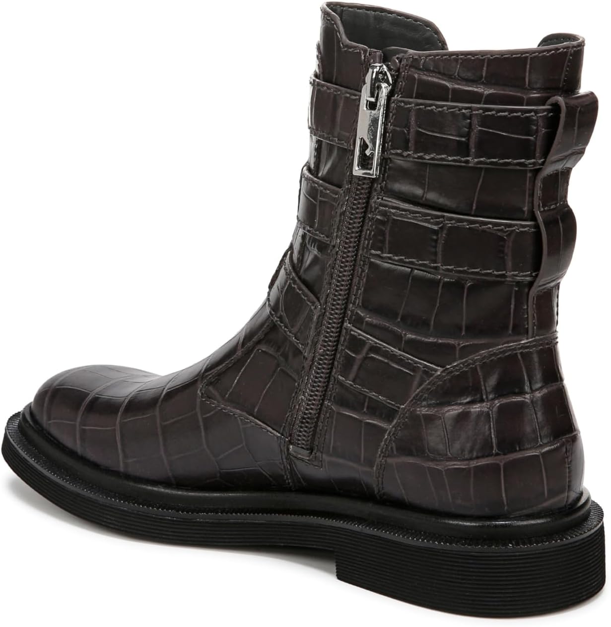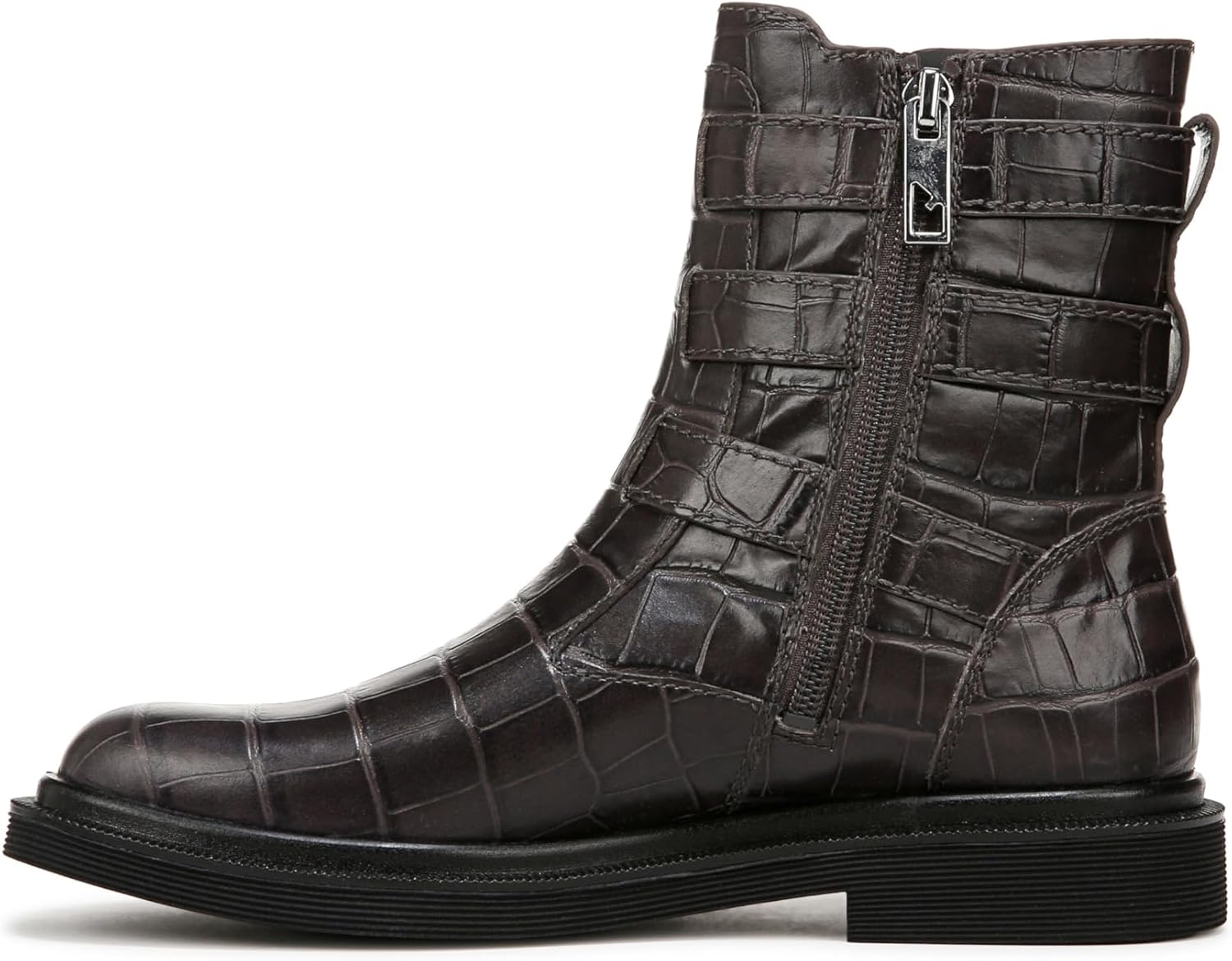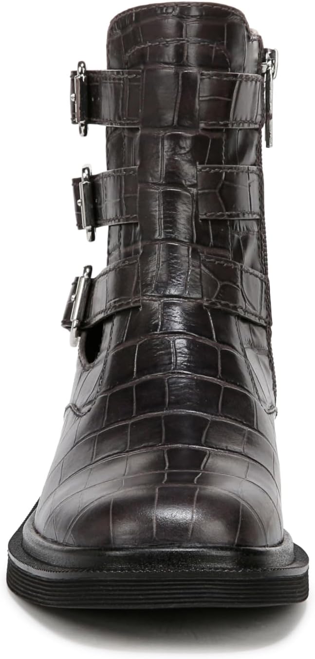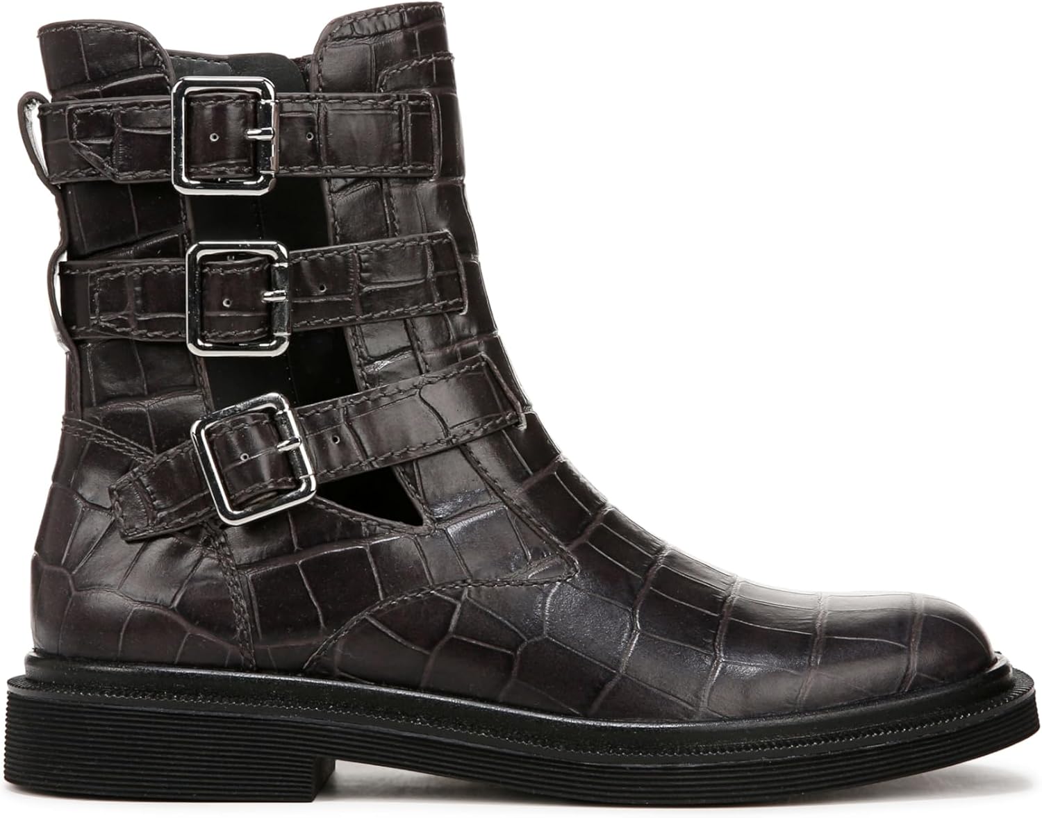 Пристегните ремень с этими потрясающими мото-ботинками на щиколотку для женщин. Яркий силуэт, который вы будете носить бесконечно. Кожа, Responsibly полученная через фабрики Leather Working Group. Декоративный ремешок и пряжка. Боковая застежка-молния. Круглый носок. Каблук 1 дюйм.