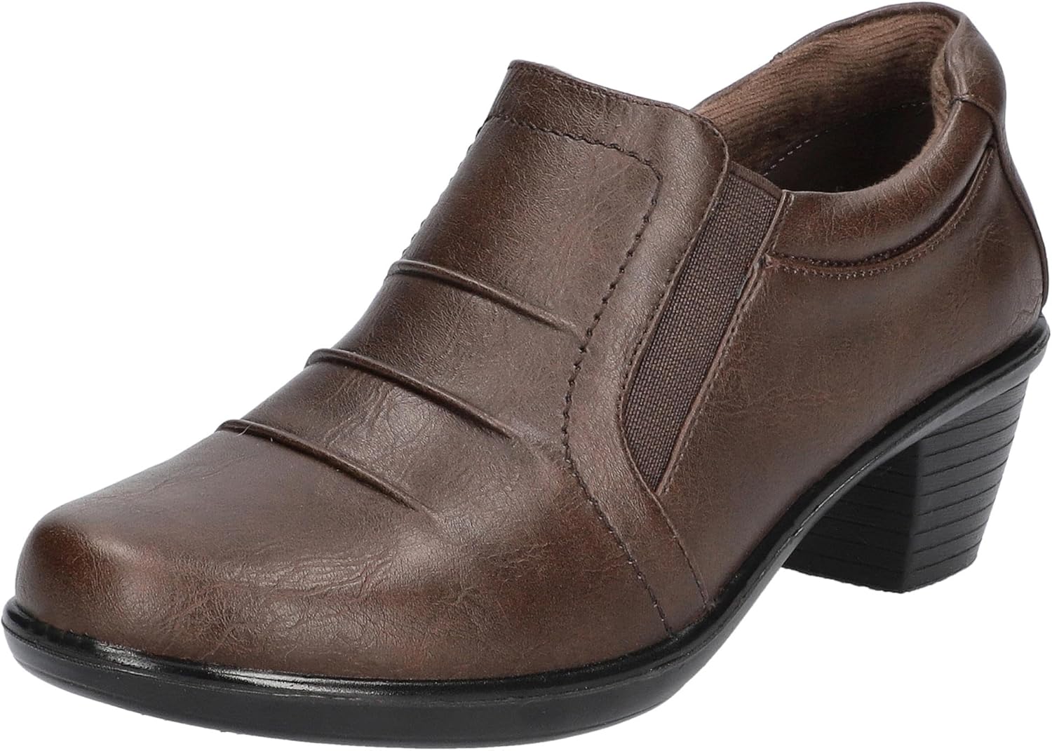 Блок-кубок на каблуке, специальные элементы для растягивания и комфорта Легкая и гибкая конструкция Comfort Wave Модные складки Внутренняя молния для легкого надевания и снятия Дополнены ультралегкой съемной стелькой Easy Motion от Easy Street для комфорта на весь день