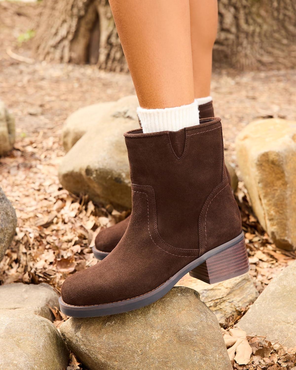 Водонепроницаемые ботильоны из замши с устойчивым блок-каблуком.