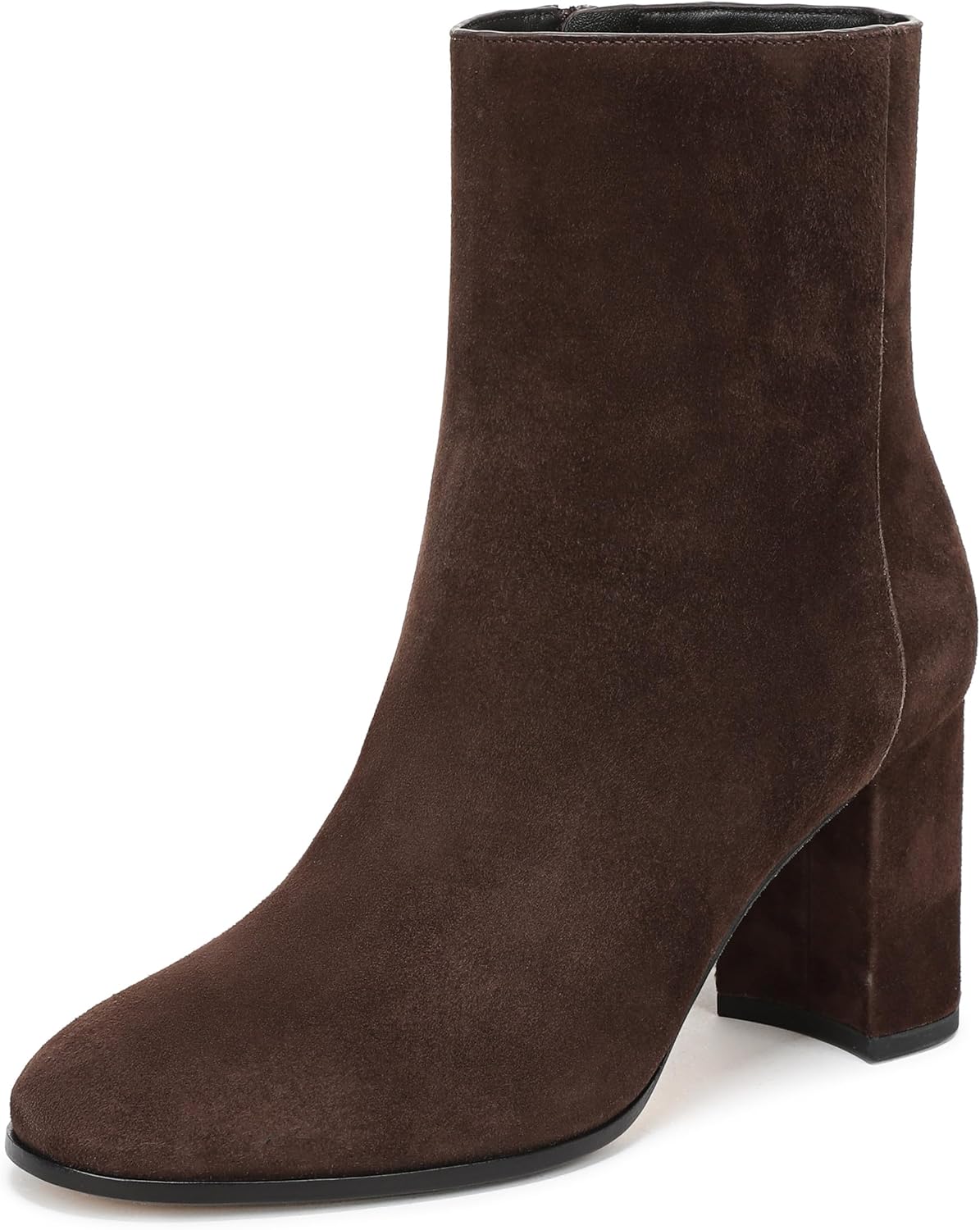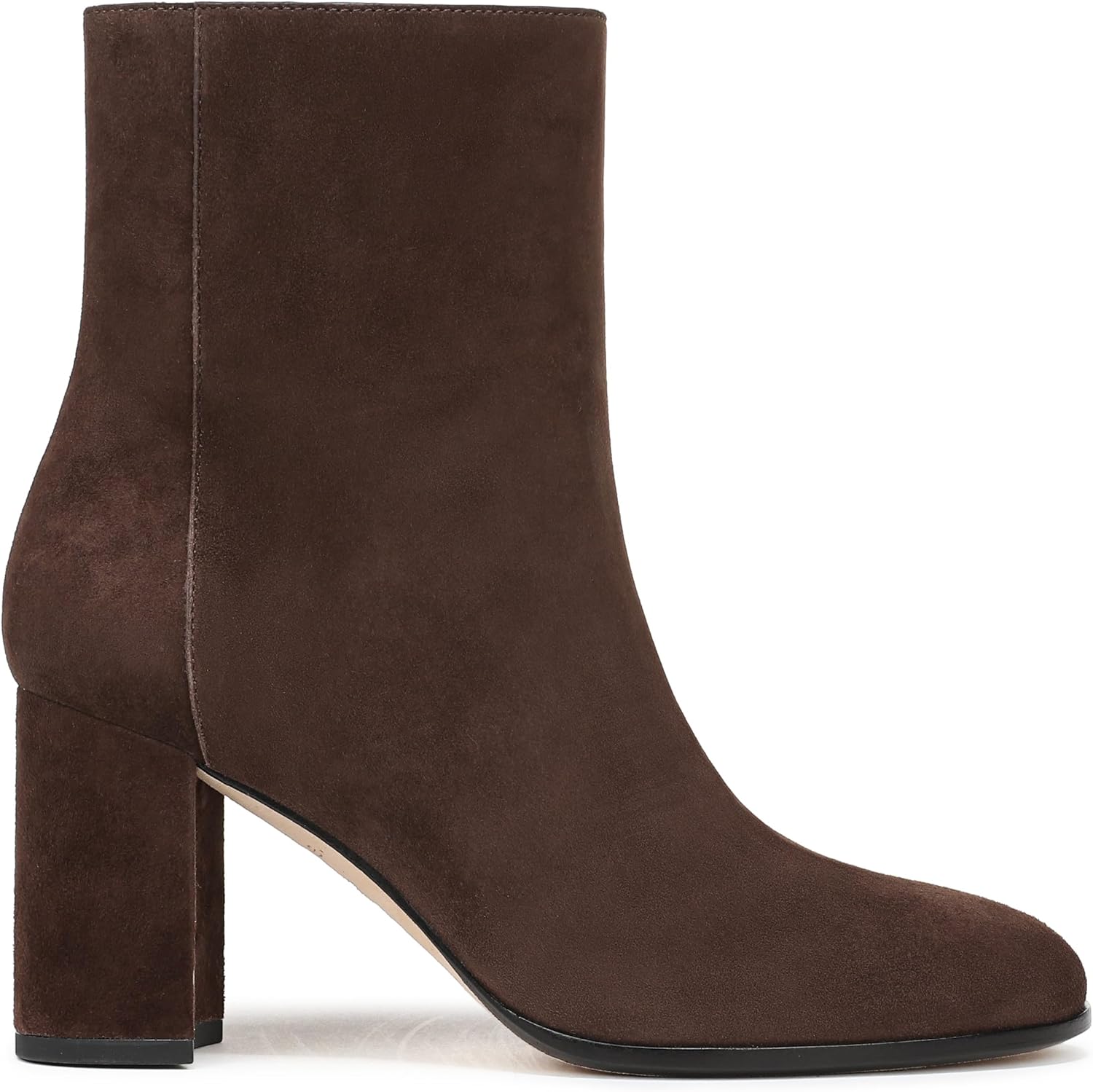 На массивном архитектурном каблуке нашего простого минималистичного ботильона использована мягкая замша, а изящный округлый носок придает ему универсальность.