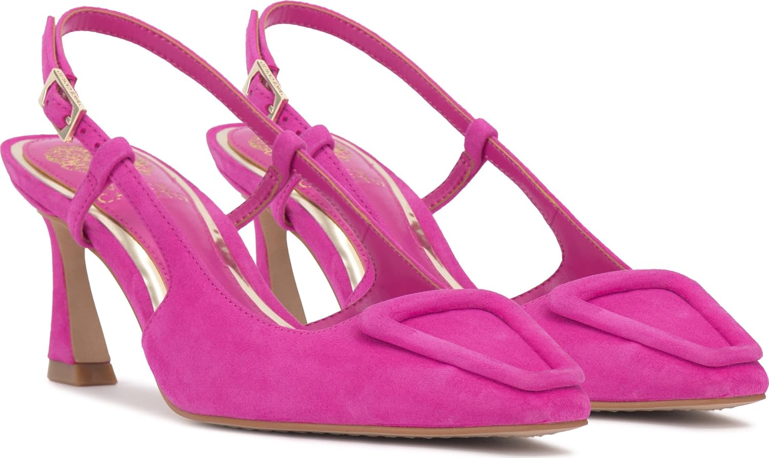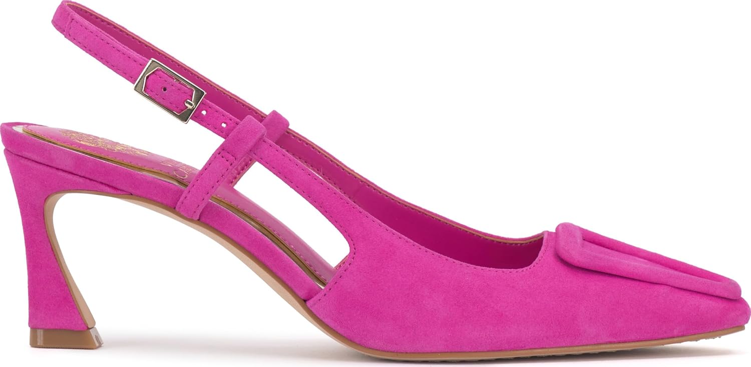 Слингбеки - это идеальная обувь на все времена года, особенно если они с закрытым носком. Модель Stila предлагает это, а также регулируемый ремешок с пряжкой. Закрытая треугольная декоративная деталь на носке и расклешенный каблук высотой 2,5 дюйма придают ей уникальный вид. Доступна в черной глянцевой коже и насыщенных замшевых оттенках.