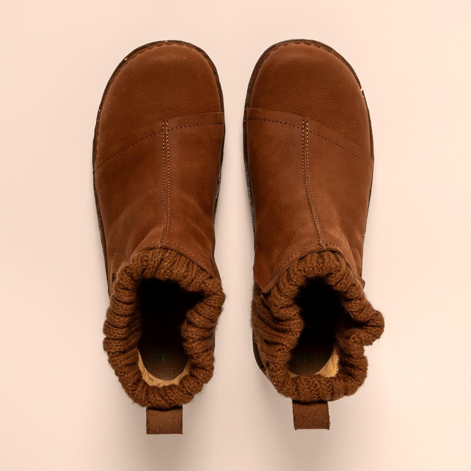 Верх из кожи с ребристым вязаным шерстяным голенищем
