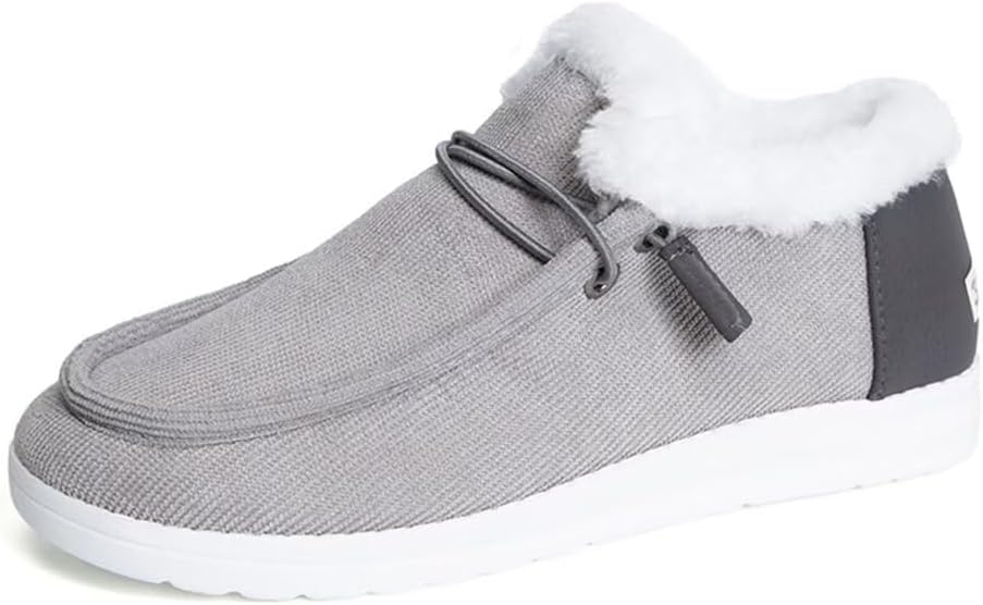 Мужские/Женские уютные лоферы с флисовой подкладкой - повседневная теплая обувь на каждый день для зимы. Окунитесь в непревзойденный комфорт и тепло этой зимой с нашими уютными лоферами с флисовой подкладкой. Выполненные из мягкой текстурированной ткани верхнего слоя в универсальном бежевом оттенке, эти туфли объединяют повседневный стиль с функциональностью для холодной погоды. Мягкая искусственная меховая подкладка окутывает ваши ноги теплом, делая их идеальными для холодных утр, уютных вечеров или повседневной носки. Дизайн с классической шнуровкой (такой же стильной, как и надежной) и ненавязчивой контрастной панелью на пятке придают лоферам непринужденный и в то же время ухоженный вид. Легкая белая подошва обеспечивает долговечность и сцепление, а конструкция «без шнурков» с плотной посадкой позволяет за секунды почувствовать комфорт. Независимо от того, выполняете ли вы дела, отдыхаете дома или отправляетесь на непринужденную встречу, эти туфли станут вашим выбором для тепла и стиля. Доступны в нескольких размерах для идеальной посадки.