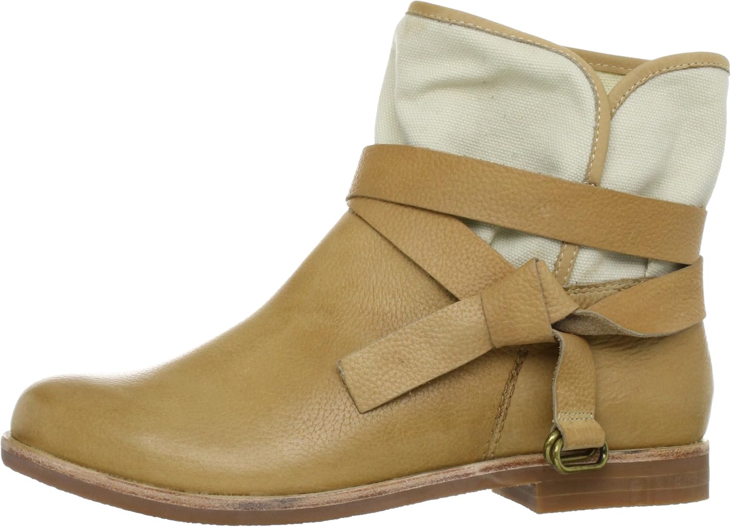 Короткие ботинки весеннего вдохновения с комбинацией отворотного канваса. Декоративный ремень съемный, и его можно складывать разными способами. Вы можете свободно экспериментировать с разными вариантами носки одной модели.