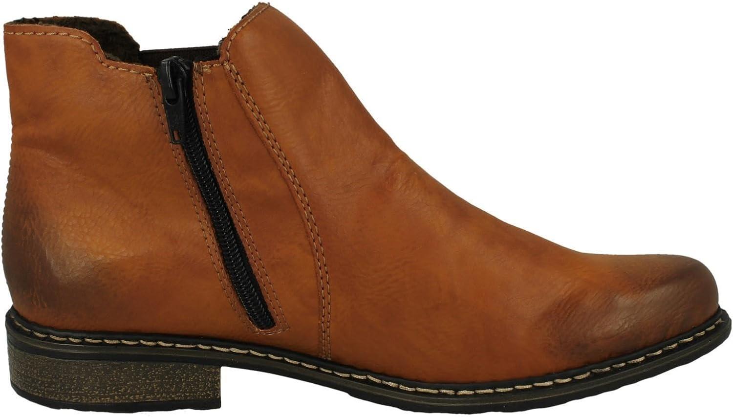 С этими женскими ботинками Rieker из текущей коллекции любой модный наряд можно дополнить идеально и стильно. Обувь Rieker - это не только декоративные и модные изделия. Их особые свойства делают их чем-то большим. Наши специальные конструкции и использованные легкие и эластичные материалы превращают каждую пару в антистрессовую обувь. Наши особенности - минимальный вес, высокая гибкость, посадка с запасом для увеличения объема стопы в течение дня и оптимальная амортизация на разных поверхностях. Эти качества делают обувь Rieker идеальным спутником во всех ситуациях повседневной жизни.