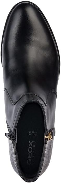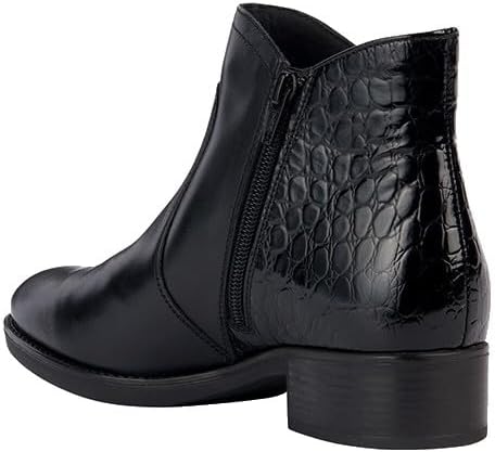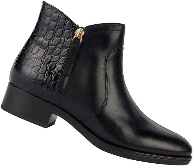 Felicity - это удобный дышащий женский ботильоны на щиколотке с повседневным дизайном и элегантным оттенком. Созданный с учетом городского образа жизни, этот вариант из гладкой кожи оснащен эластичной боковой вставкой и дополнен декоративным ремешком. - Запатентованные системы Geox гарантируют воздухопроницаемость подошвы, обеспечивая ощущение комфорта для стопы. - Легко носить, для непревзойденного комфорта. - Легко надевать благодаря застежке-молнии. - Высота каблука: 3,5 см.
