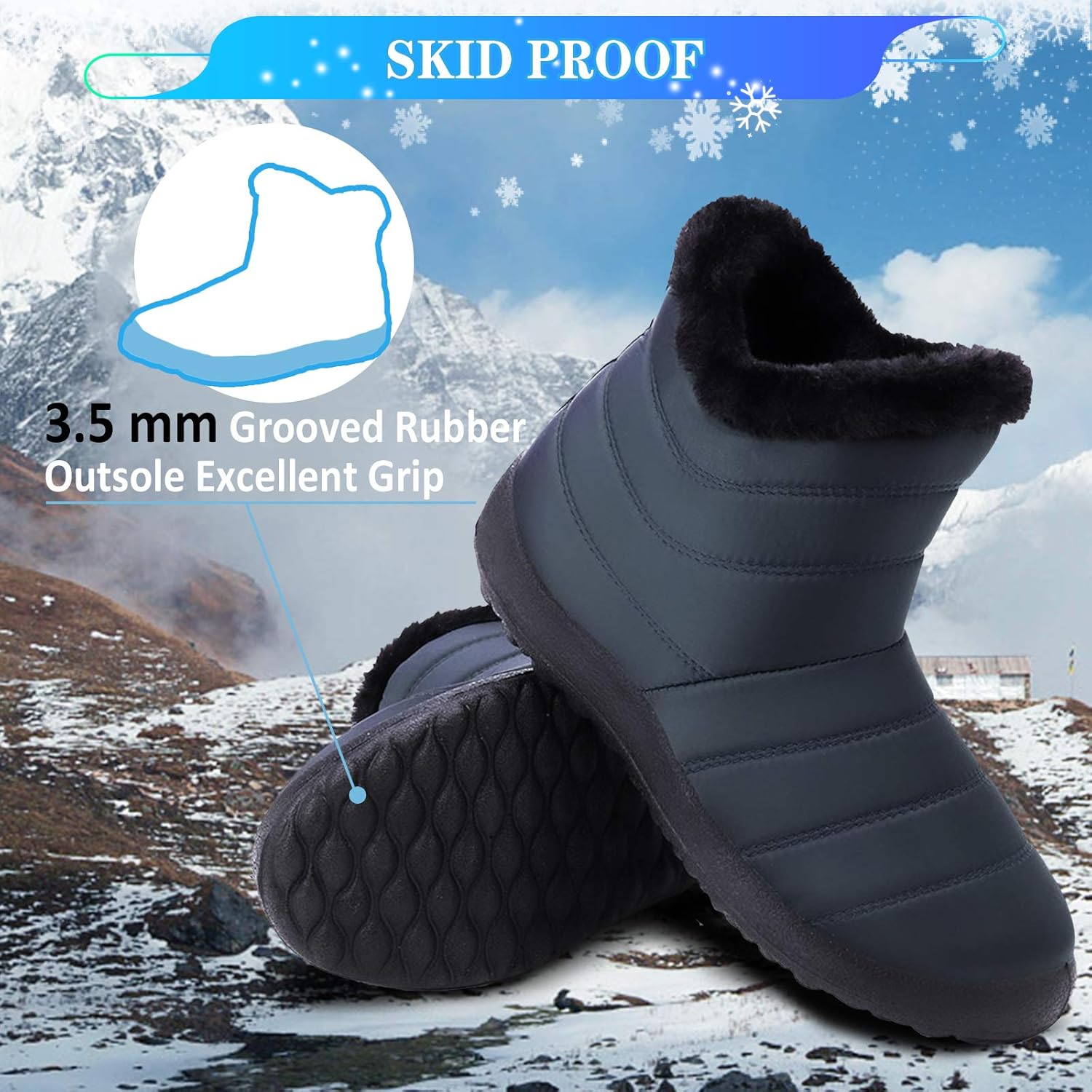 Нескользящие: Подошва имеет отличное сцепление и не скользит. Ботинок обеспечивает высокий уровень удержания на снегу, что подарит вам незабываемые ощущения, будь то ходьба, прыжки или бег зимой.