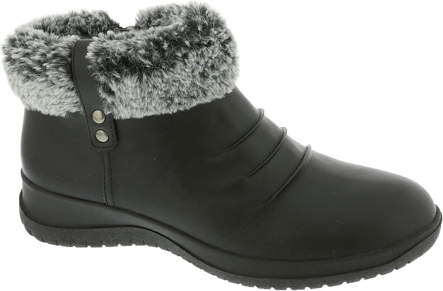 *Верх из синтетических и текстильных материалов с воротником, утепленным искусственным мехом *Застежка-молния для легкого надевания и снятия *Стелька с мягкой подкладкой для комфорта *Подошва с протектором для отличного сцепления *Высота каблука 1"