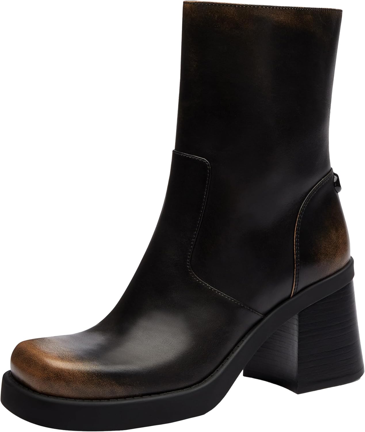 Детали имеют значение: Верх из кожи, подкладка из искусственной кожи, стелька из кожи, резиновая подошва, молния. Высота голенища: 6 1/4 дюйма, окружность: 11 1/2 дюйма, высота каблука: 3 1/4 дюйма.