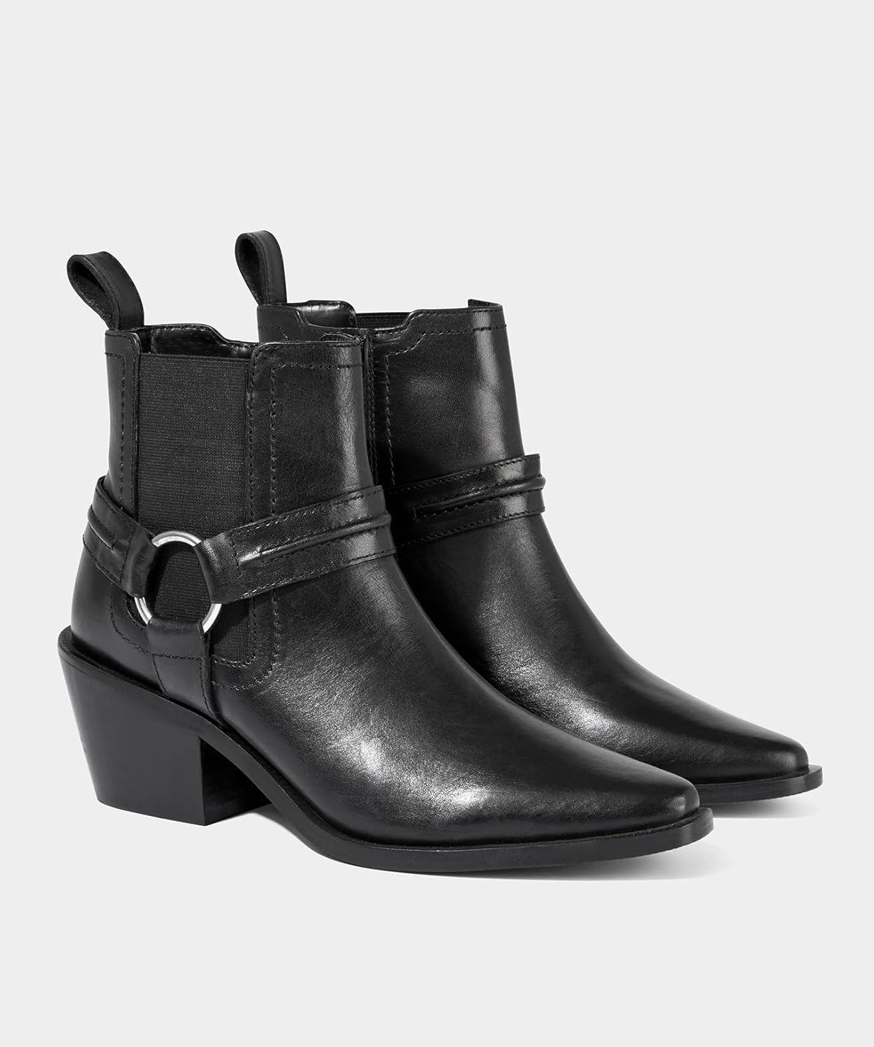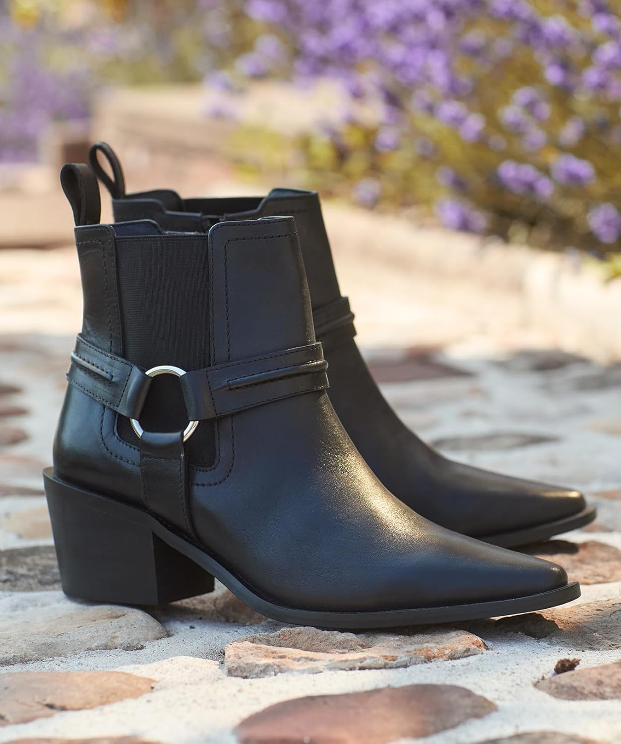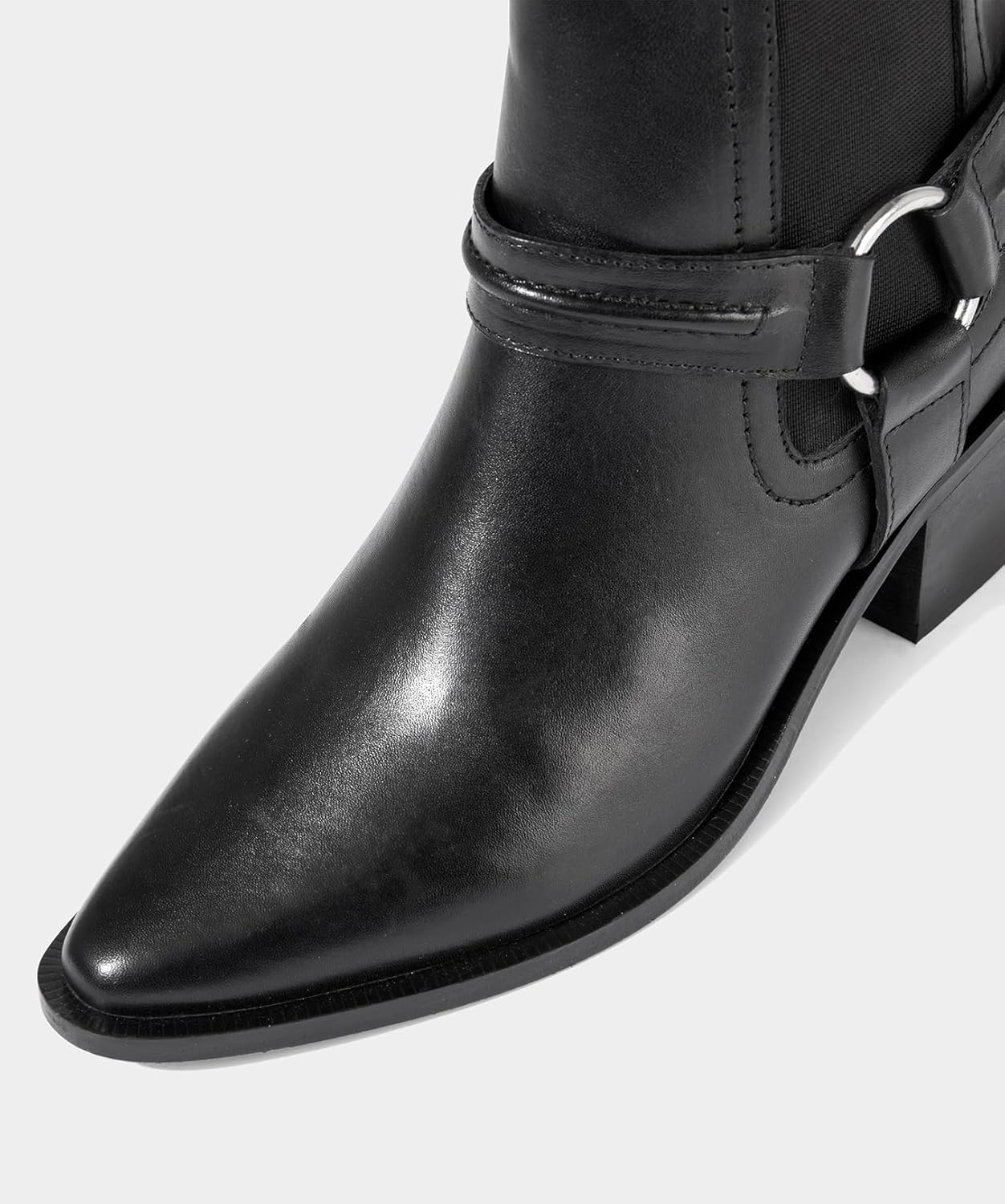 Эти черные кожаные ботинки олицетворяют дерзкую элегантность. Для создания полного образа в стиле вестерн с выдающимися ремешками мы добавили заостренный носок для женственного завершения. С эластичной вставкой для максимального комфорта - просто заправьте джинсы и добавьте шляпу с широкими полями или сочетайте их с макси-платьем для стильного вечернего образа.