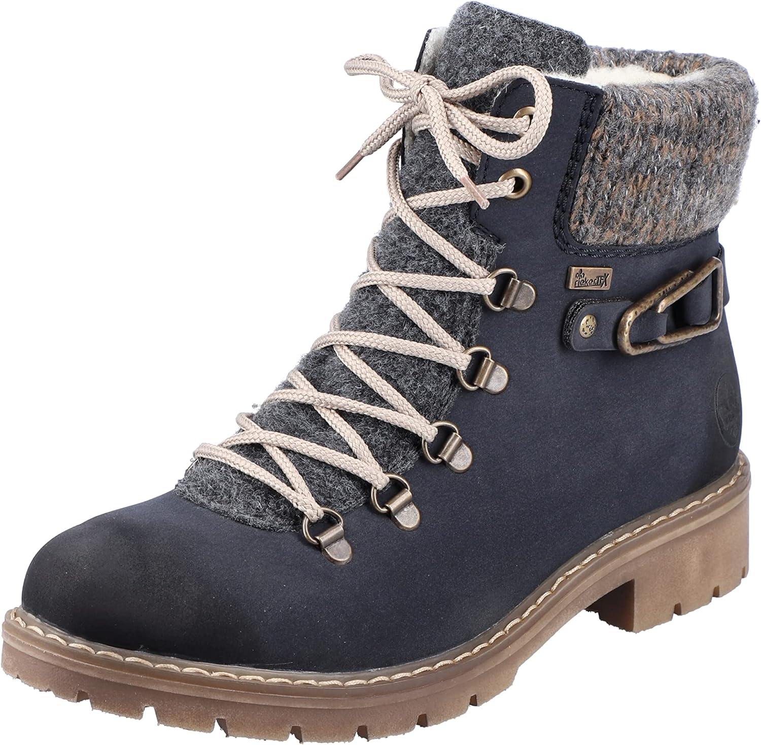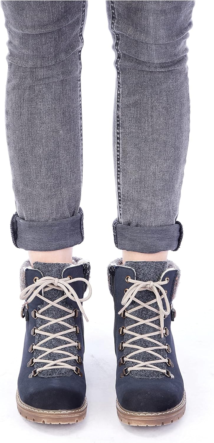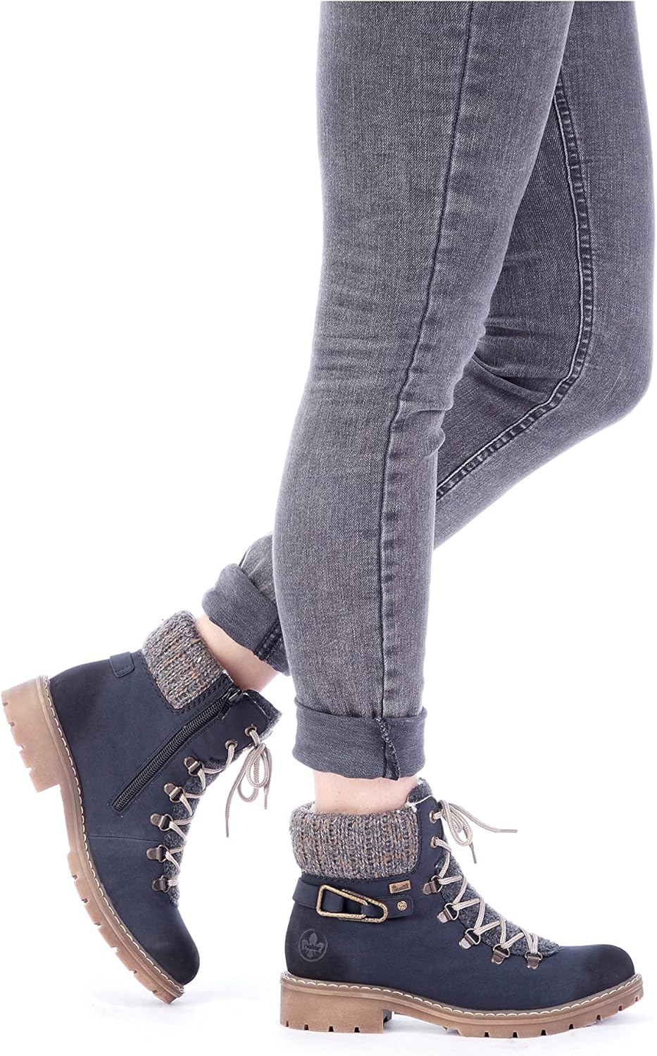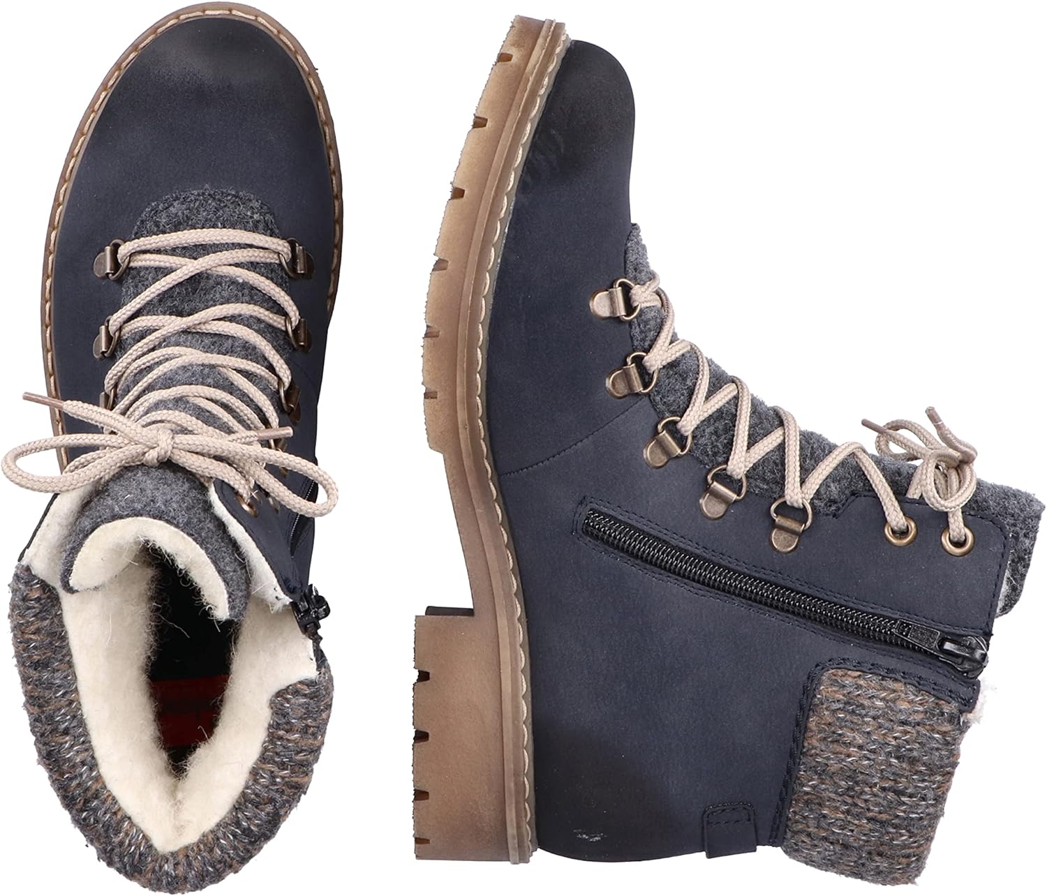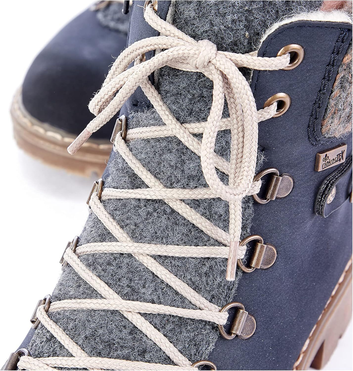 Холодные дни, теплые ноги. Темно-синие шнуровочные ботинки Rieker не только привлекают внимание, но и невероятно удобны для повседневного использования. Ботинок выполнен в плетеном стиле, что делает его особенно прочным и гибким. Несмотря на молнию, ботинок легко застегивается с помощью шнуровки. Манжета голенища в трикотажном исполнении идеально завершает современный дизайн. Подошва с устойчивым каблуком обеспечивает хорошее сцепление на любом покрытии. Дополнительно мягкая стелька гарантирует еще больше комфорта. Водонепроницаемая мембрана RiekerTEX защищает ноги от влаги и ветра, а уютная подкладка долго сохраняет их в тепле. Так что собирайтесь и идите навстречу приключениям.