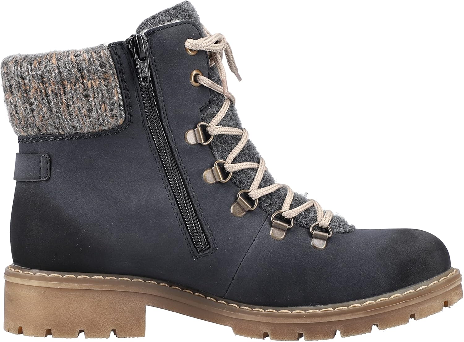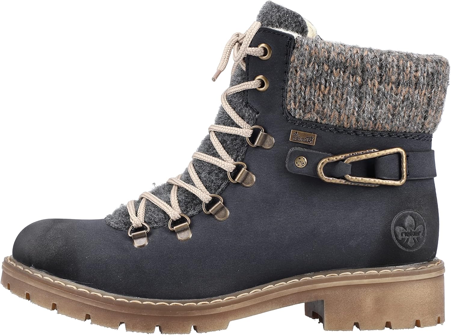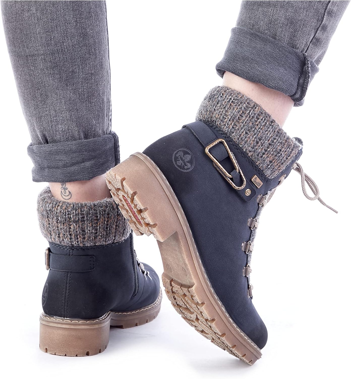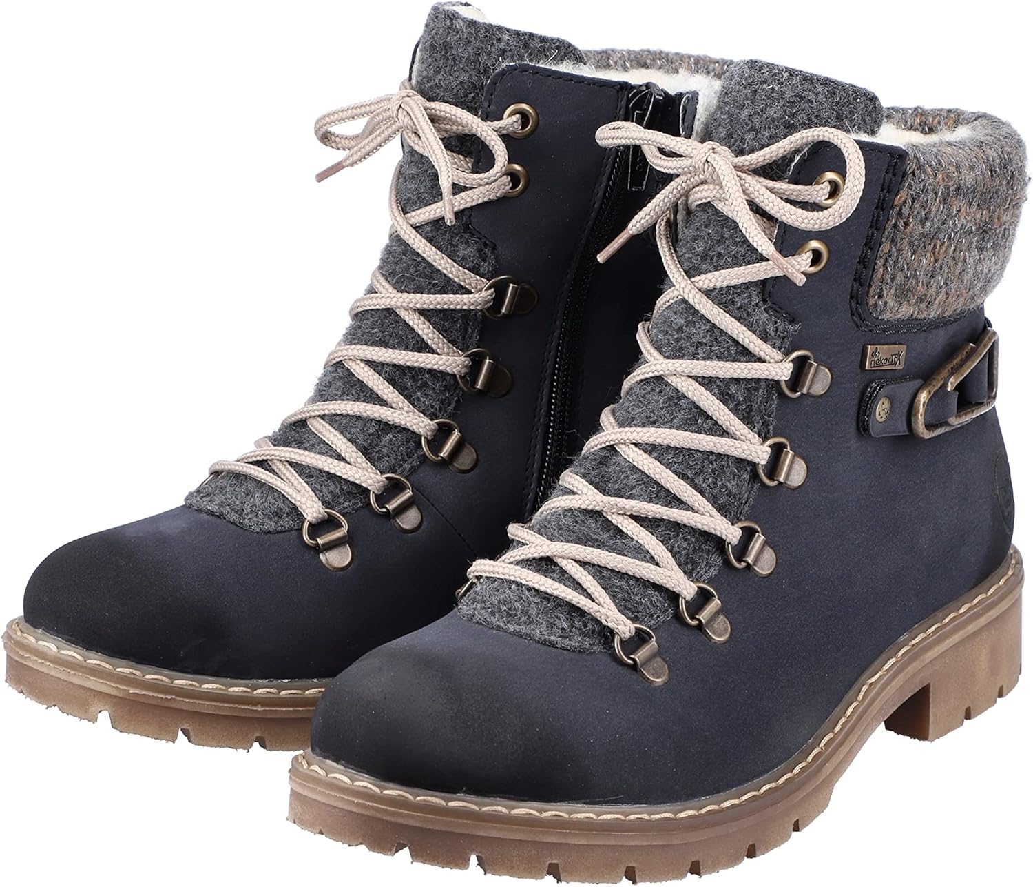 Холодные дни, теплые ноги. Темно-синие шнуровочные ботинки Rieker не только привлекают внимание, но и невероятно удобны для повседневного использования. Ботинок выполнен в плетеном стиле, что делает его особенно прочным и гибким. Несмотря на молнию, ботинок легко застегивается с помощью шнуровки. Манжета голенища в трикотажном исполнении идеально завершает современный дизайн. Подошва с устойчивым каблуком обеспечивает хорошее сцепление на любом покрытии. Дополнительно мягкая стелька гарантирует еще больше комфорта. Водонепроницаемая мембрана RiekerTEX защищает ноги от влаги и ветра, а уютная подкладка долго сохраняет их в тепле. Так что собирайтесь и идите навстречу приключениям.
