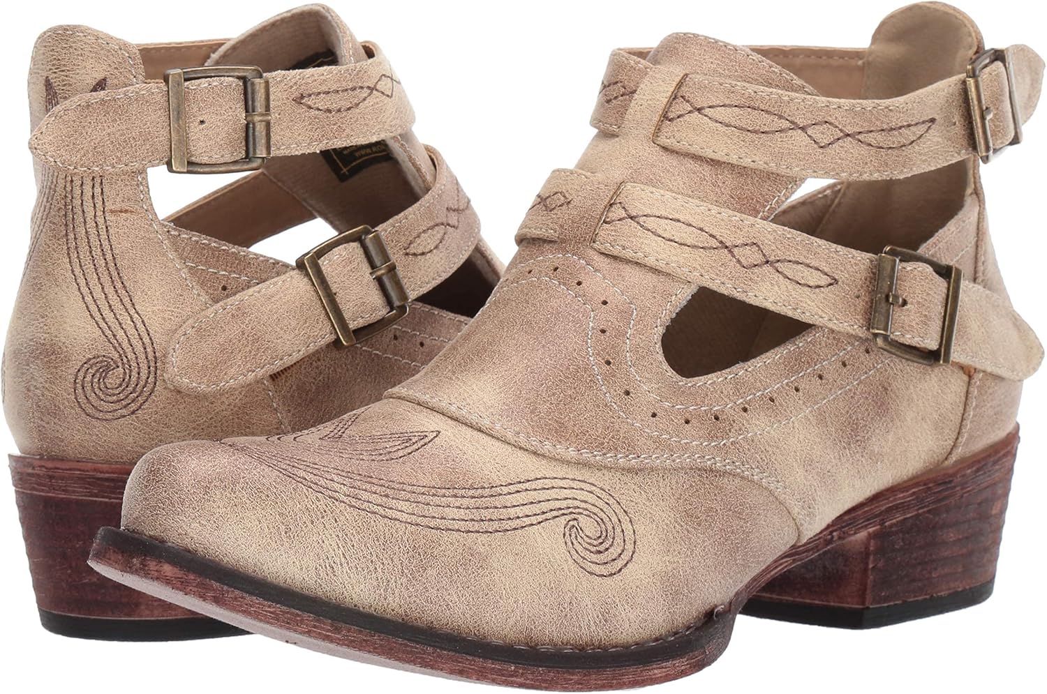 Ботильоны Roper Willa - идеальное дополнение к вашему стильному западному образу. Оснащены двумя ремешками из искусственной кожи с регулируемыми металлическими пряжками для оптимальной посадки. Каблук с украшением в виде окантовки.