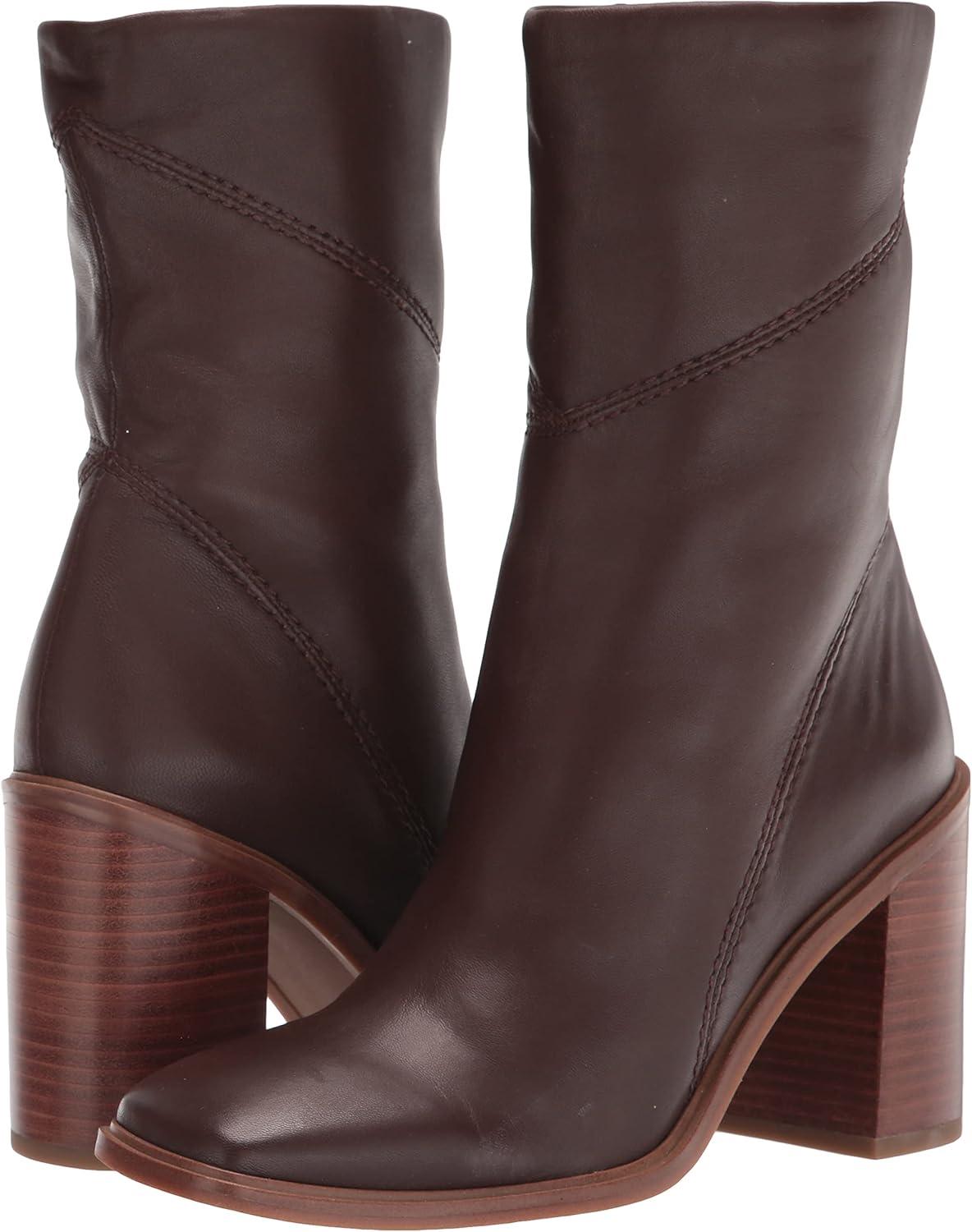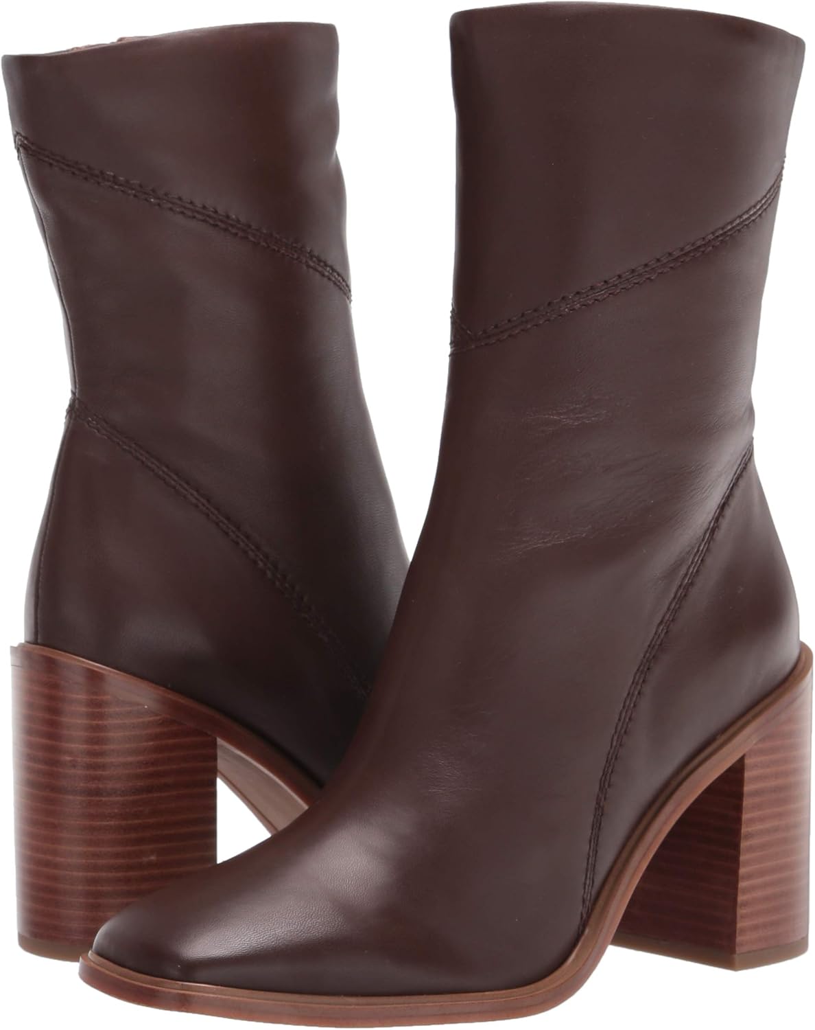 Женские ботильоны на каблуке с верхом из кожи или замши, частично выполненные из переработанных материалов Ботильоны средней высоты с боковой молнией для легкого надевания и снятия Современные ботинки с квадратным носком для женщин Современные ботинки с модными декоративными швами имеют слегка мягкую стельку для дополнительного комфорта Высота голенища 18,2 см, обхват 25 см