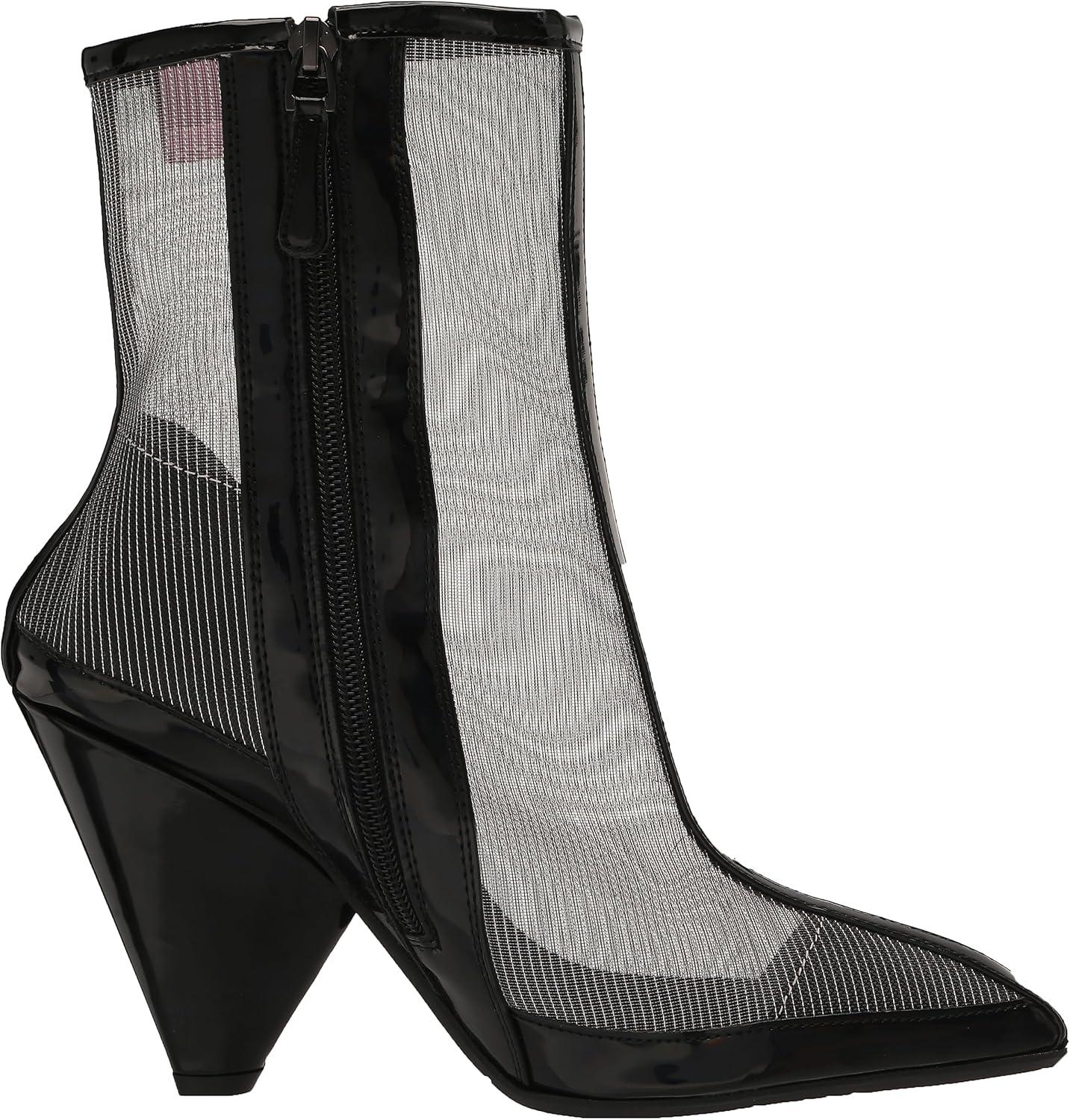 Ботильоны до щиколотки с сетчатым дизайном, заостренным носком и уникальным дизайном каблука. Застежка на молнию.