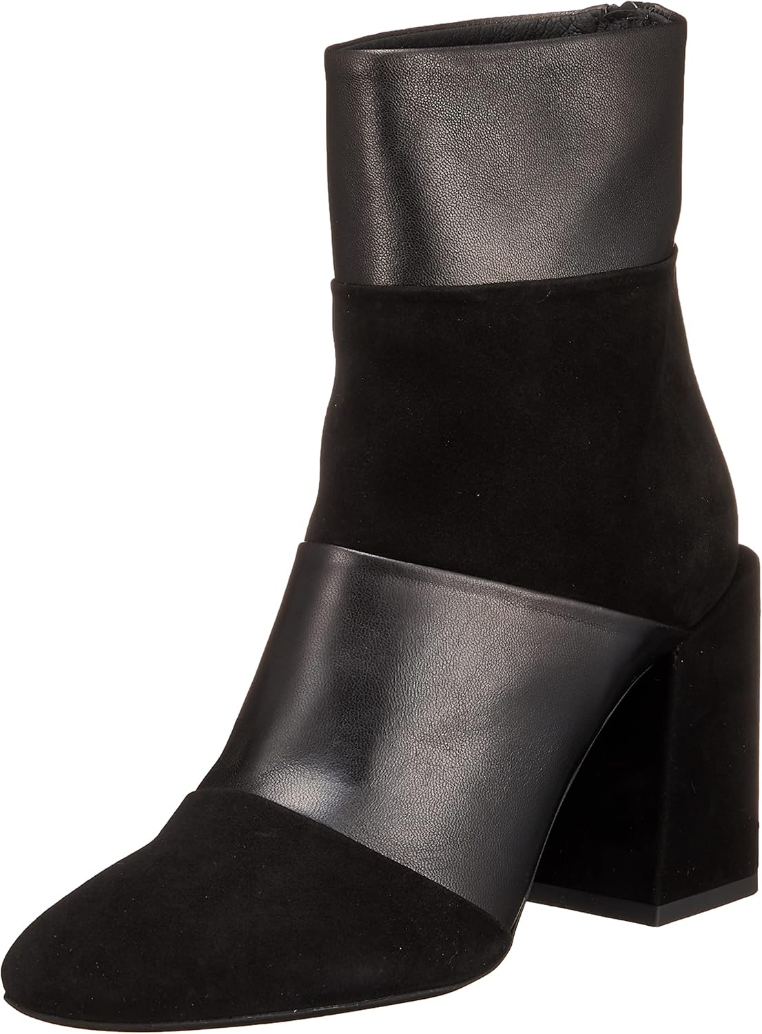 Ботильоны на высоком каблуке с округлым носком и массивным каблуком. Внутренняя молния и резиновая подошва.