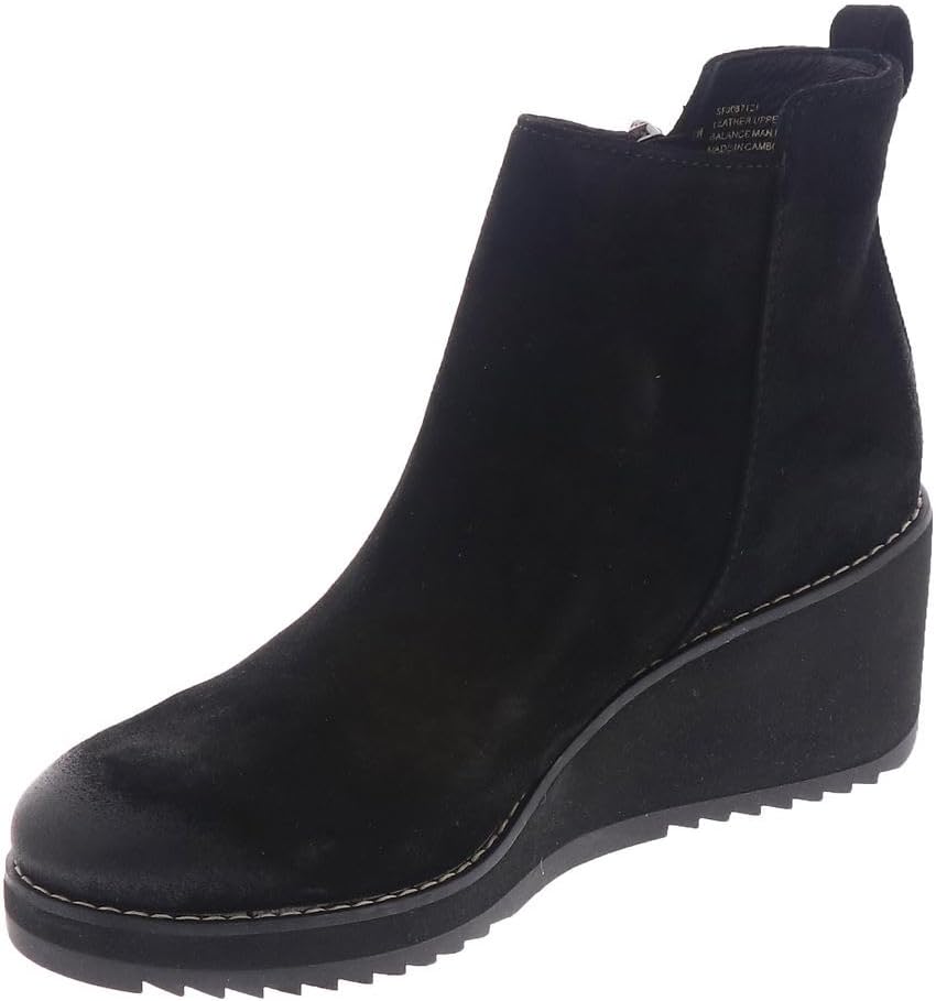 Водоотталкивающий верх из итальянской замши с герметичными швами для защиты от воды Боковая молния для легкого надевания и снятия Примерно 7 см обернутый клин Подошва из TPR и EVA с зубчатым протектором Двухцветный рант