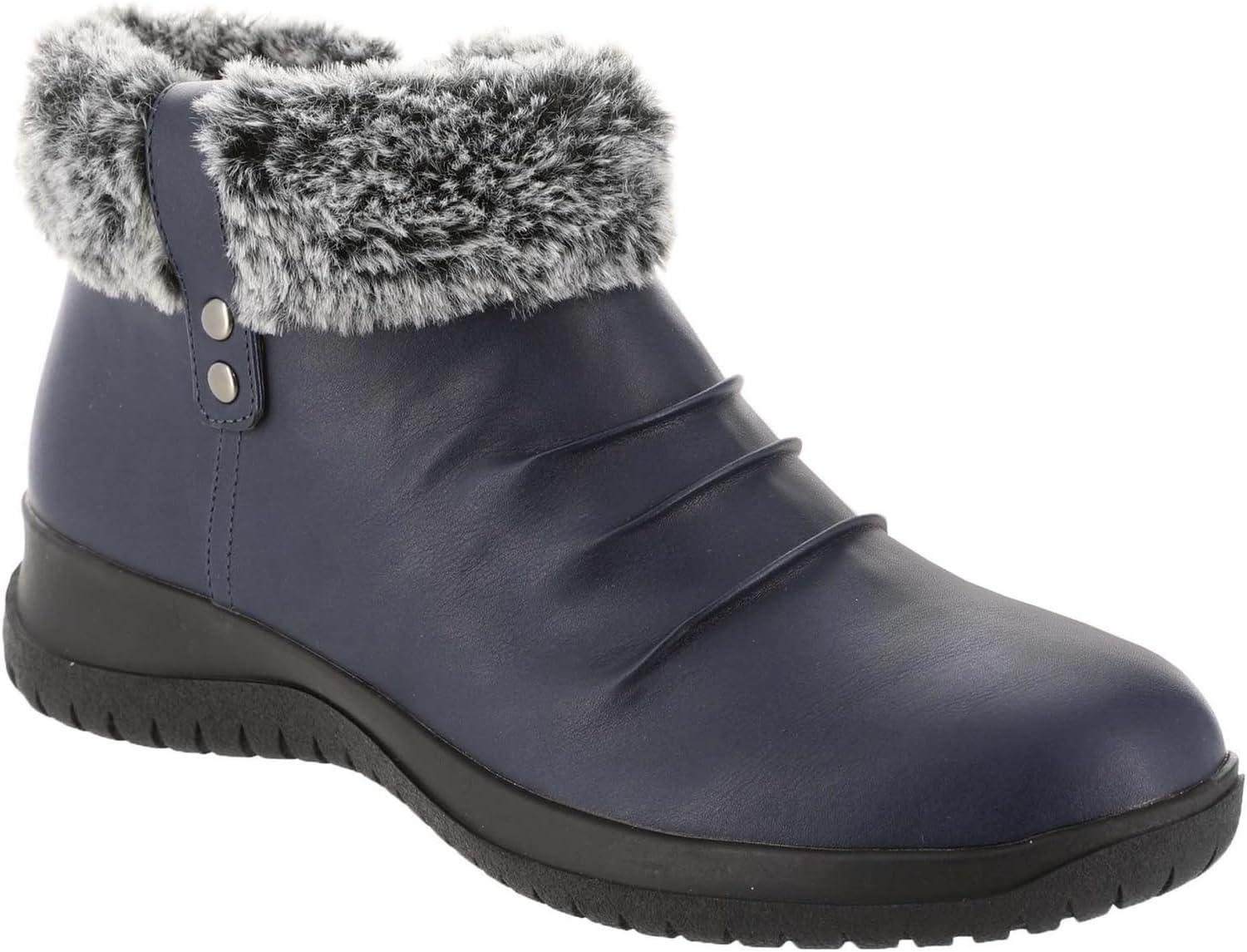 *Верх из синтетики и текстиля с воротником, утепленным искусственным мехом *Застежка-молния для легкого надевания и снятия *Стелька с мягкой подкладкой для комфорта *Подошва с рельефным протектором для уверенного сцепления *Высота каблука 1"