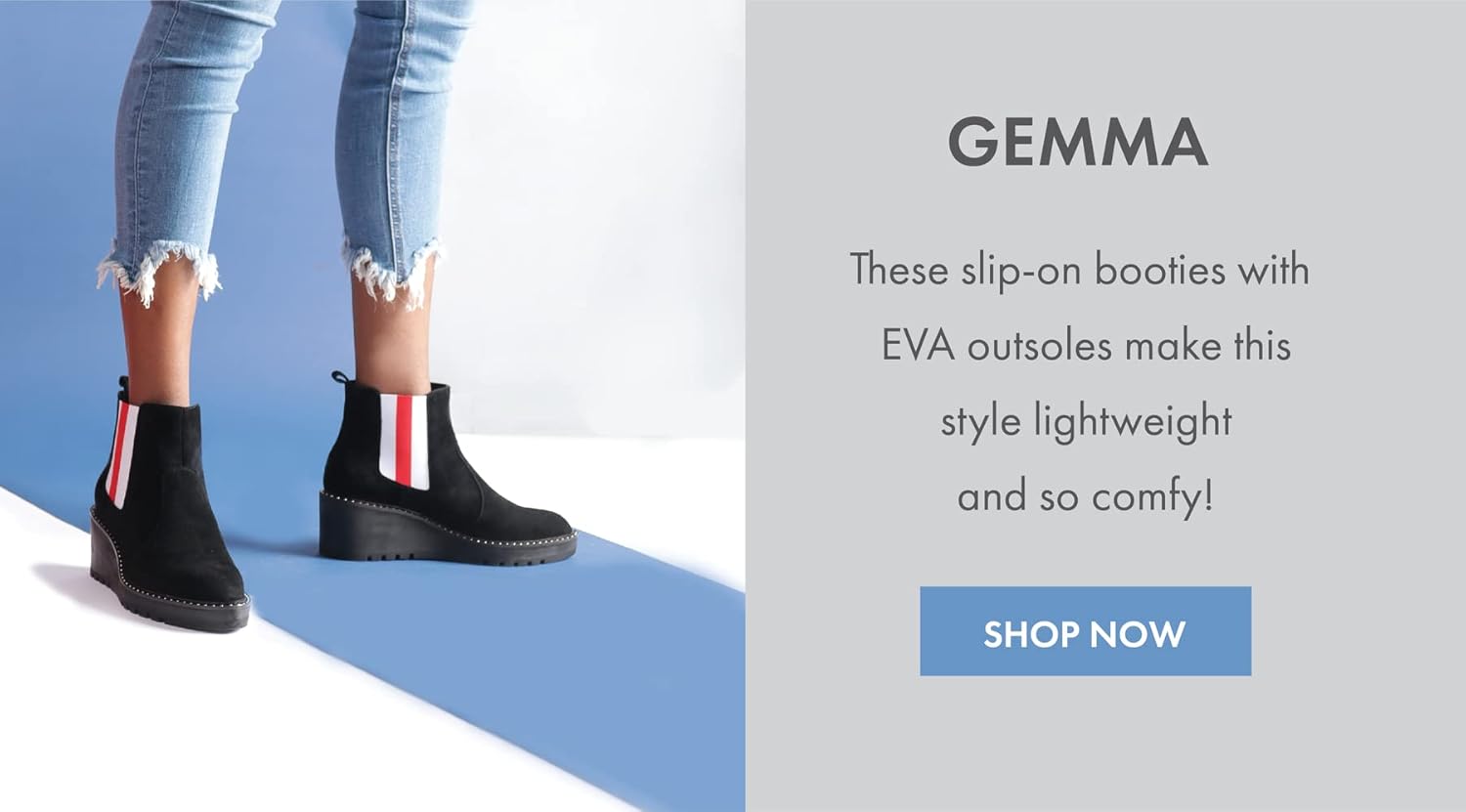 Ботильоны GEMMA - идеальный вариант, чтобы встретить осень! Верх из замши с эластичными вставками позволяет легко надевать этот ботинок. Мини-латунные заклепки вокруг подошвы придают ему роскошный штрих. Подошва на танкетке из EVA-резины делает этот ботильоны очень удобным и долговечным.