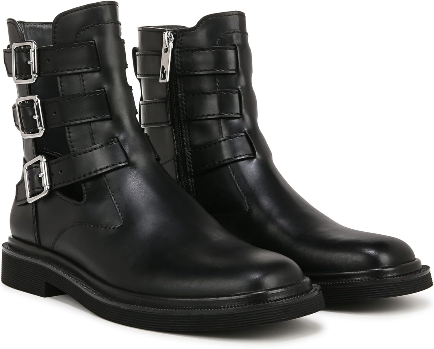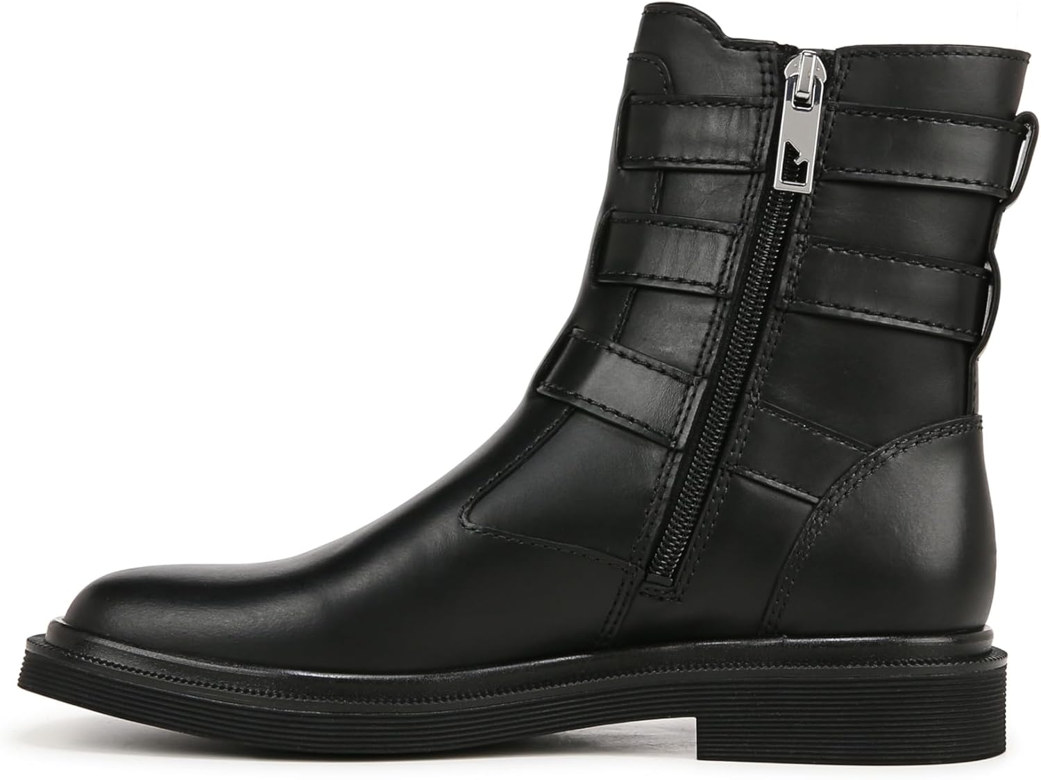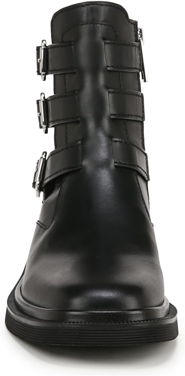 Пристегните ремень с этими потрясающими мото-ботинками на щиколотку для женщин. Яркий силуэт, который вы будете носить бесконечно. Кожа, Responsibly полученная через фабрики Leather Working Group. Декоративный ремешок и пряжка. Боковая застежка-молния. Круглый носок. Каблук 1 дюйм.