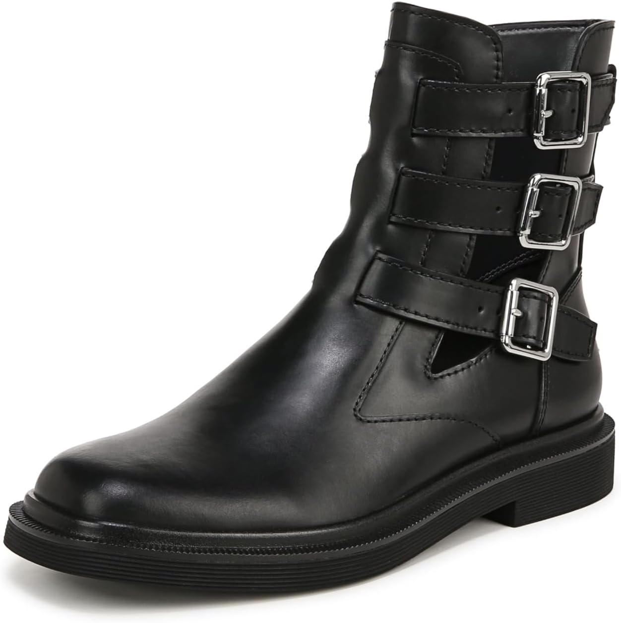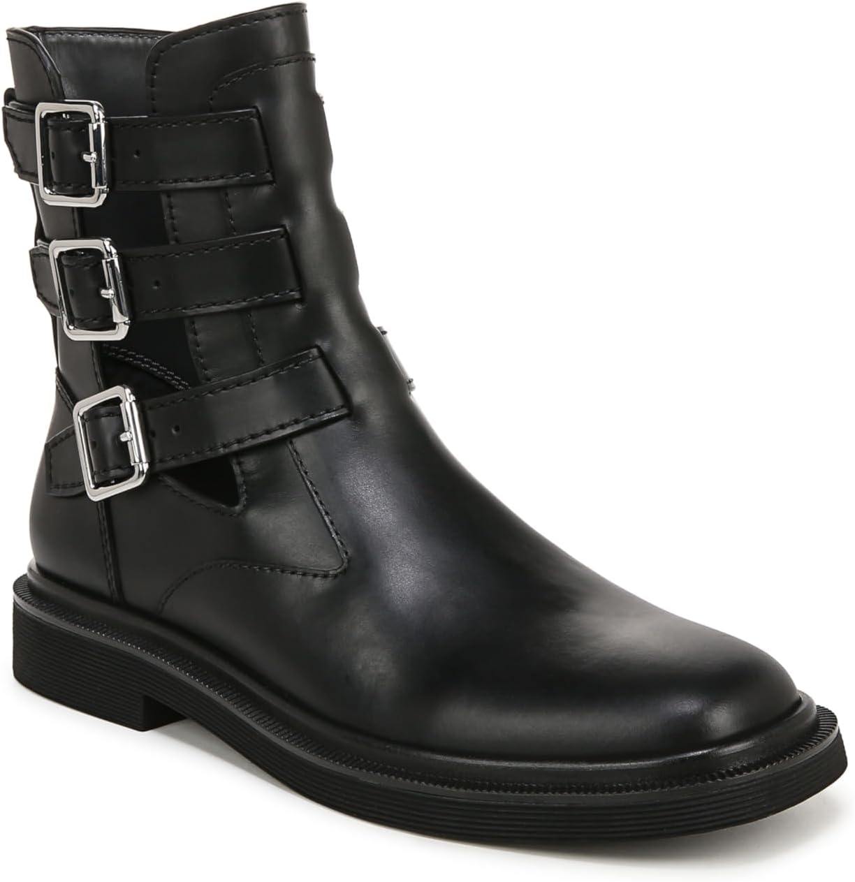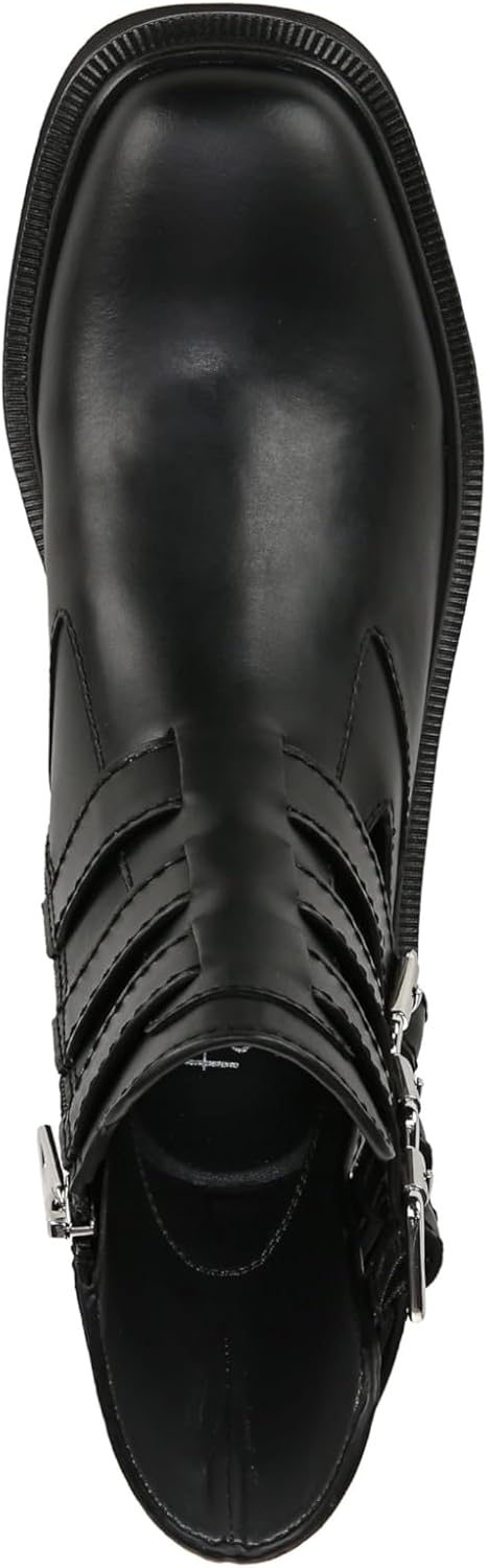 Пристегните ремень с этими потрясающими мото-ботинками на щиколотку для женщин. Яркий силуэт, который вы будете носить бесконечно. Кожа, Responsibly полученная через фабрики Leather Working Group. Декоративный ремешок и пряжка. Боковая застежка-молния. Круглый носок. Каблук 1 дюйм.