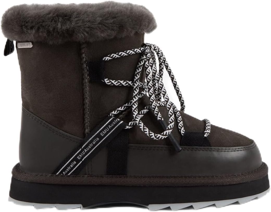 Классический дизайн высокотехнологичных ботинок Стелька с овчиной австралийских овец Шнуровочные петли EMU с водонепроницаемыми силиконовыми наконечниками для шнурков и водонепроницаемой металлической эмблемой Двухцветная подошва, резина и высокотехнологичный EPR, образующие промежуточную подошву для комфорта Молния и резиновый пуллер EMU