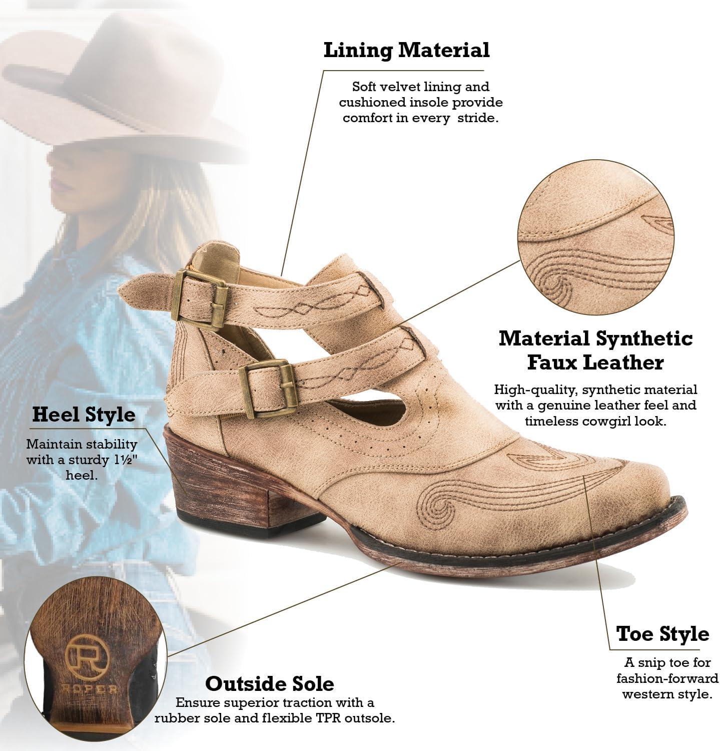 Ботильоны Roper Willa - идеальное дополнение к вашему стильному западному образу. Оснащены двумя ремешками из искусственной кожи с регулируемыми металлическими пряжками для оптимальной посадки. Каблук с украшением в виде окантовки.