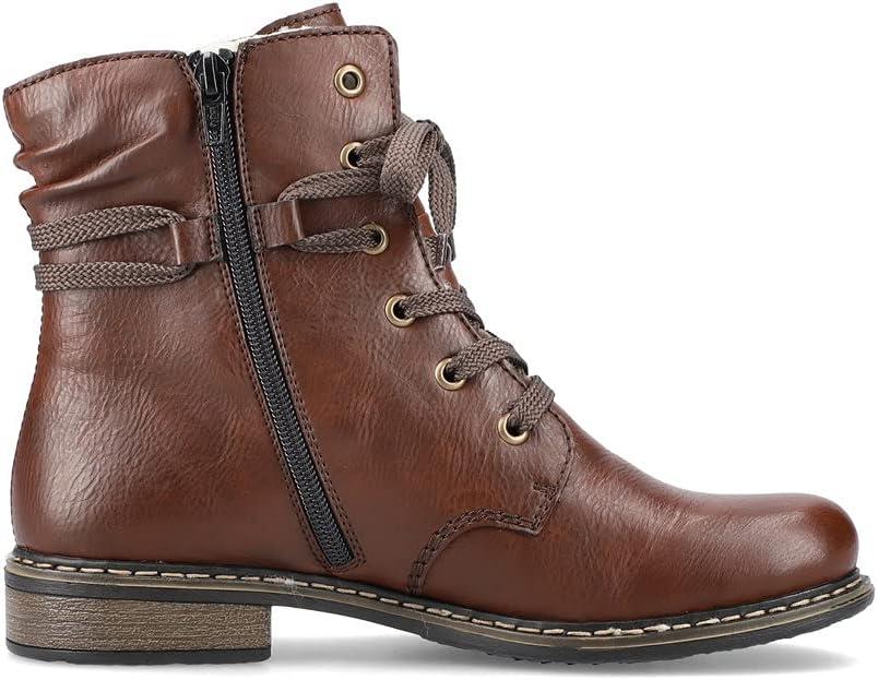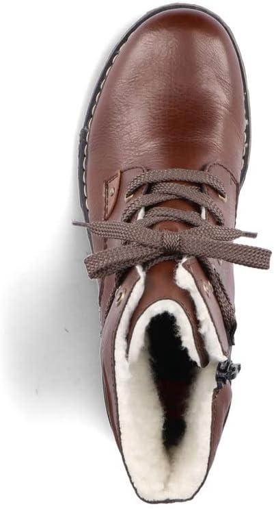 Холодные ноги - в прошлом. Эти шоколадно-коричневые ботинки Rieker на шнуровке впечатляют своим современным дизайном и высоким уровнем комфорта при носке. Обувь выполнена в плетеном стиле, что делает ее особенно прочной и гибкой. Шнуровка дополняет молнию, обеспечивая функциональность и удобство. Подошва одновременно амортизирующая и легкая, обеспечивая двойной комфорт при каждом шаге. Кроме того, очень мягкая стелька гарантирует дополнительную порцию комфорта. Теплая подкладка супермягкая и не оставляет шанса холоду. Ничто не мешает долгим прогулкам.