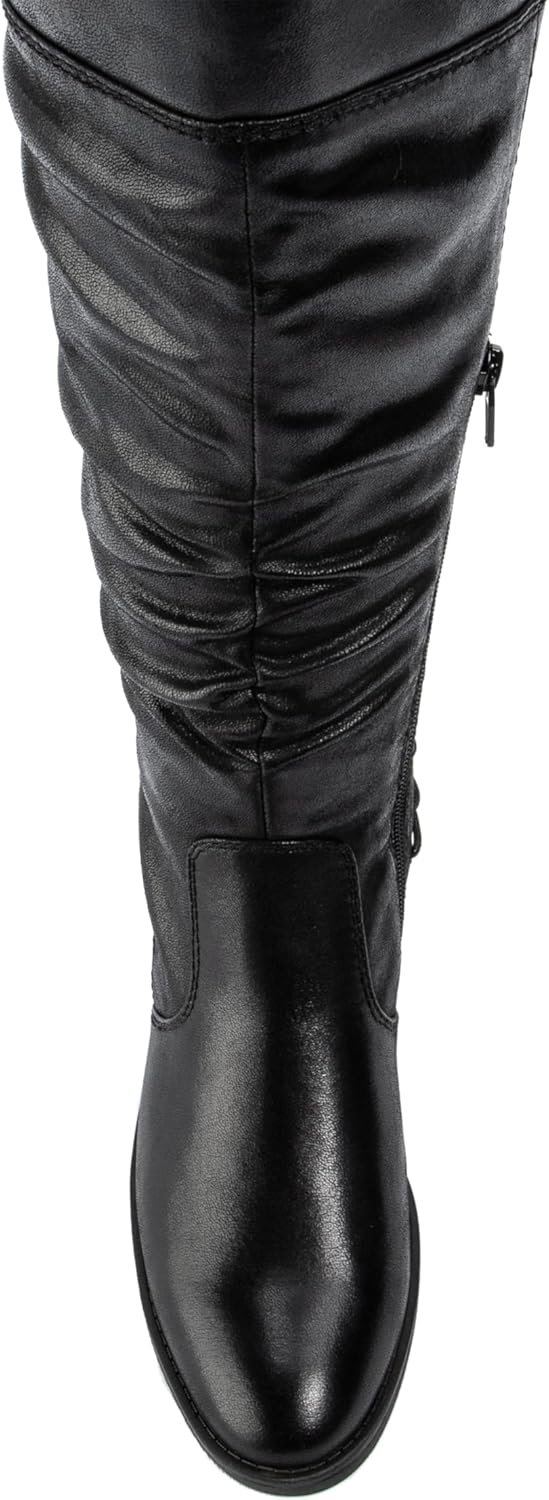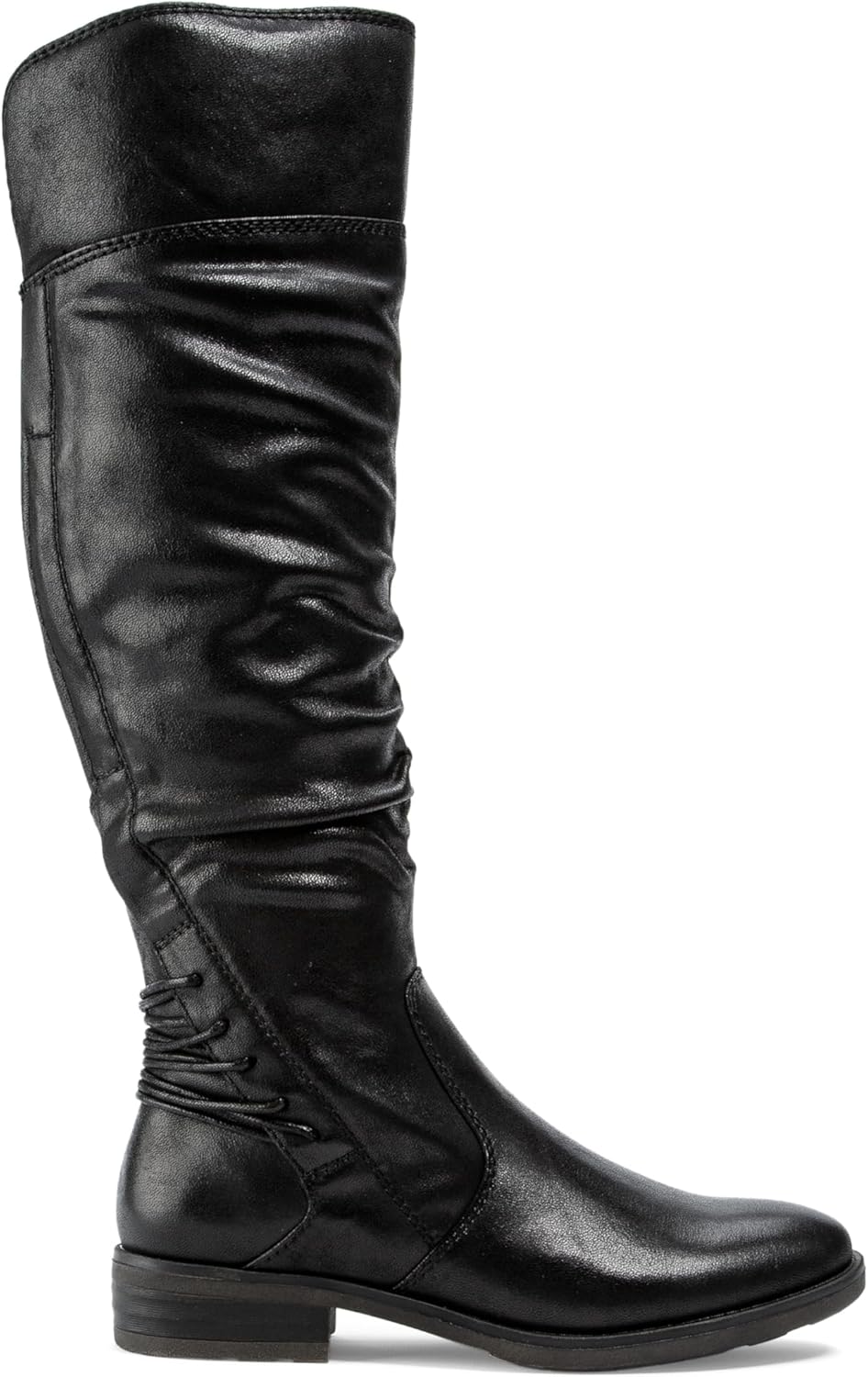 Впечатлите всех с моделью Averil - стильное обновление вашей классической ездовой обуви! Задняя эластичная часть голенища украшена эффектной шнуровкой, а сборка спереди сейчас в моде. Круглый носок и низкий каблук обеспечивают комфорт и непринужденность, а внутренняя молния делает обувь удобной для повседневного ношения.