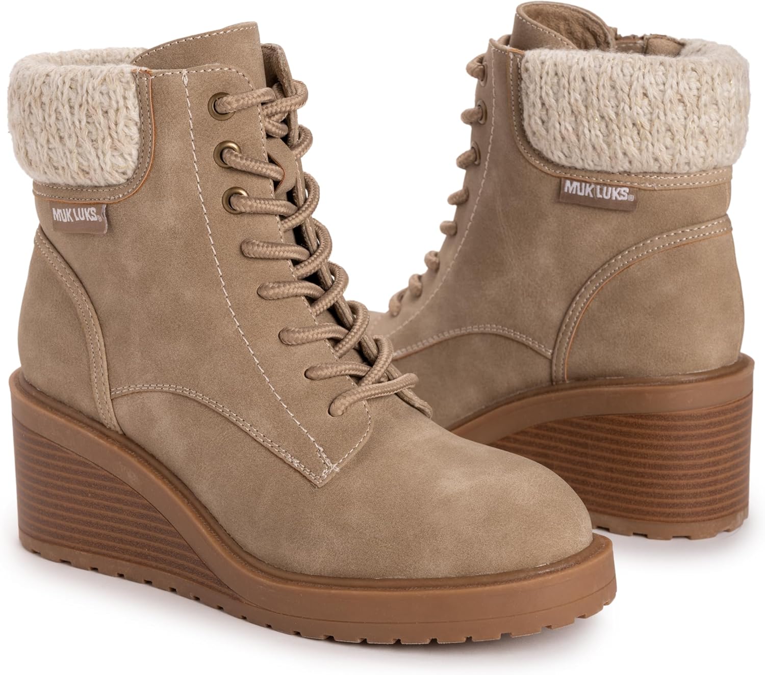 Познакомьтесь с вашей новой обувью для осени: женскими ботильонами на танкетке MUK LUKS Sky Solange! С милыми манжетами, которые открывают стильный вязаный узор с блестками, и модной шнуровкой спереди, эти ботинки одновременно милые и уютные. Подошва на танкетке и стельки из пены обеспечивают комфорт на каждом шагу. Пополните свой осенний гардероб этими необходимыми ботинками на танкетке! Чистка пятном. Боковая молния и полная шнуровка. Удобная стелька с эффектом памяти. Уютная подкладка. Вязаная манжета с блестящей люрексной деталью.