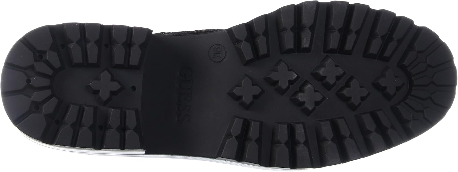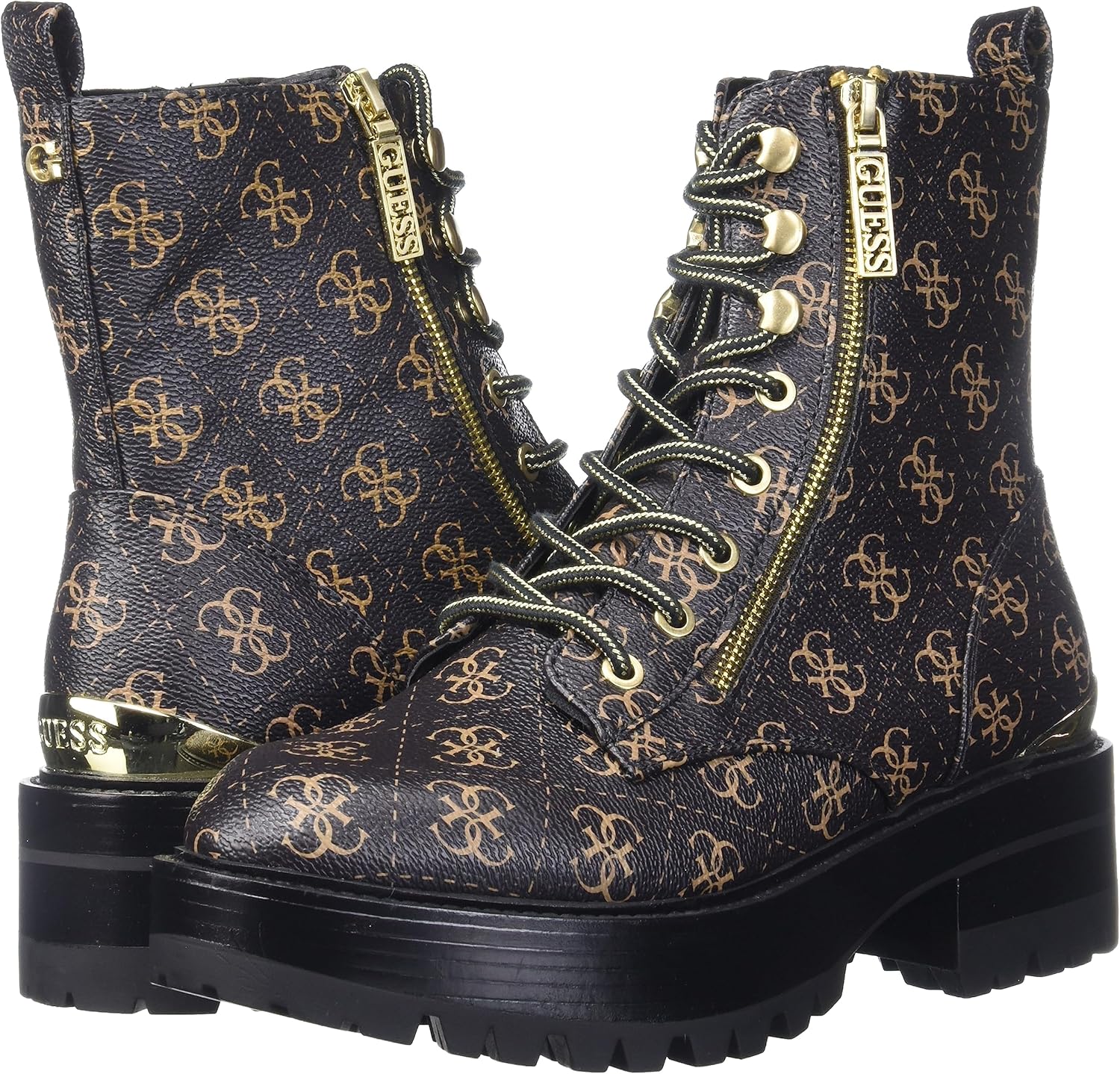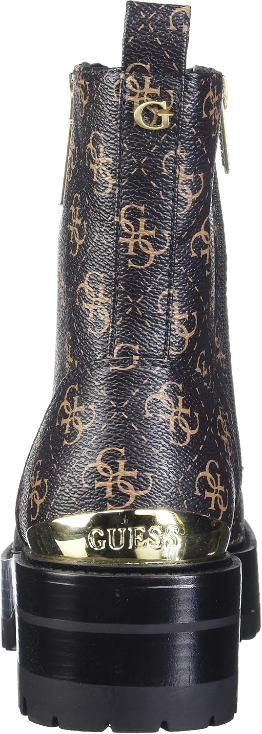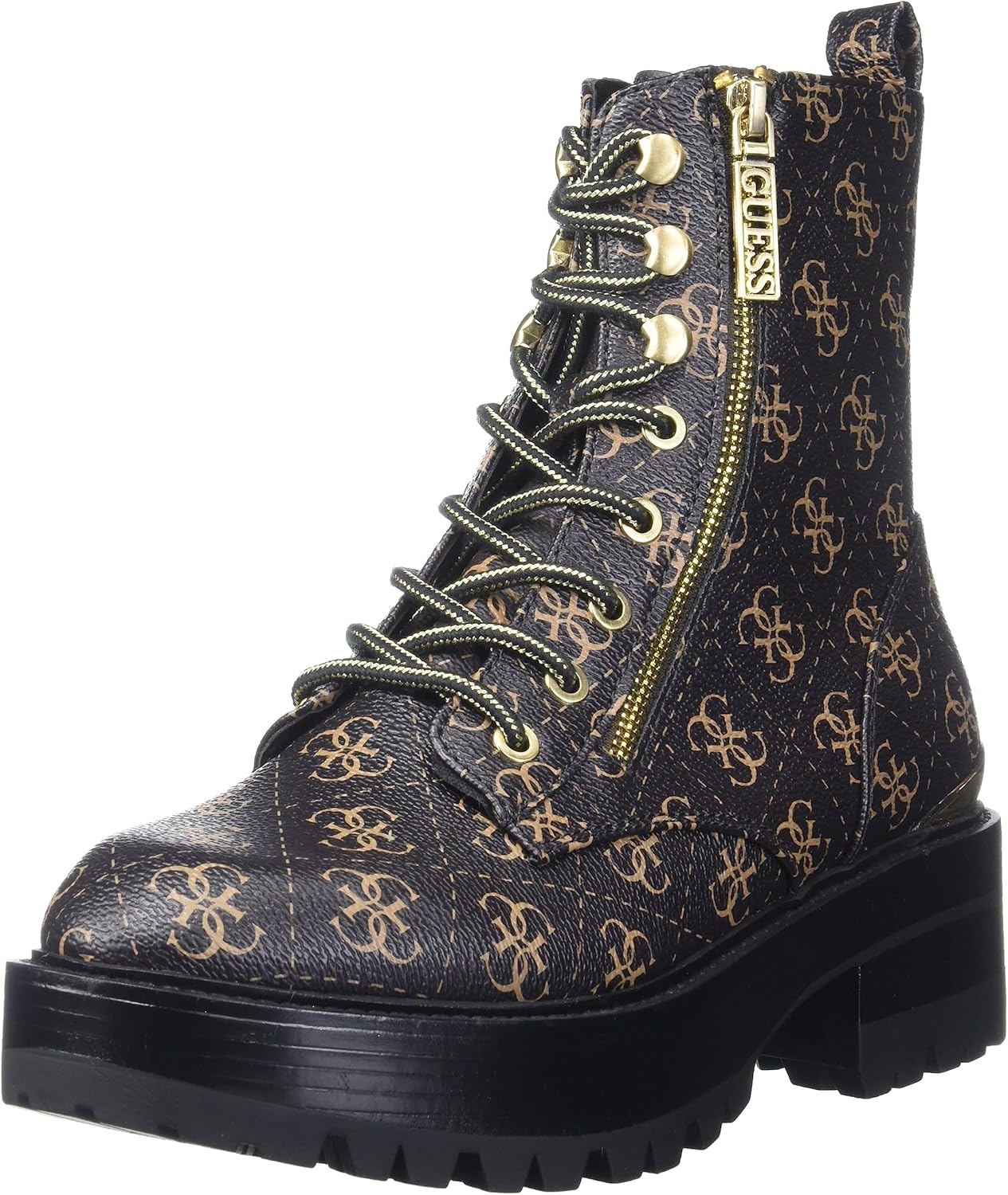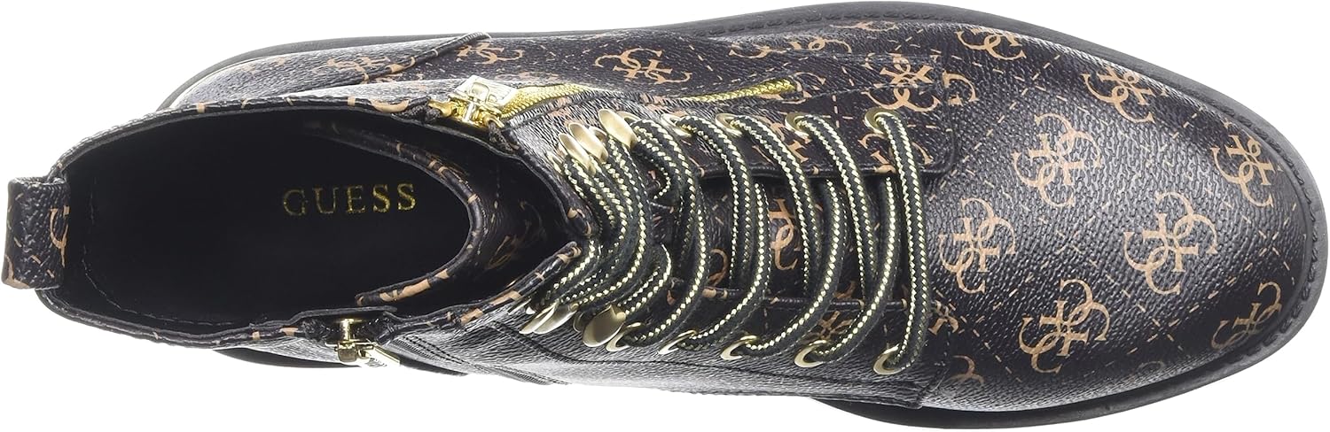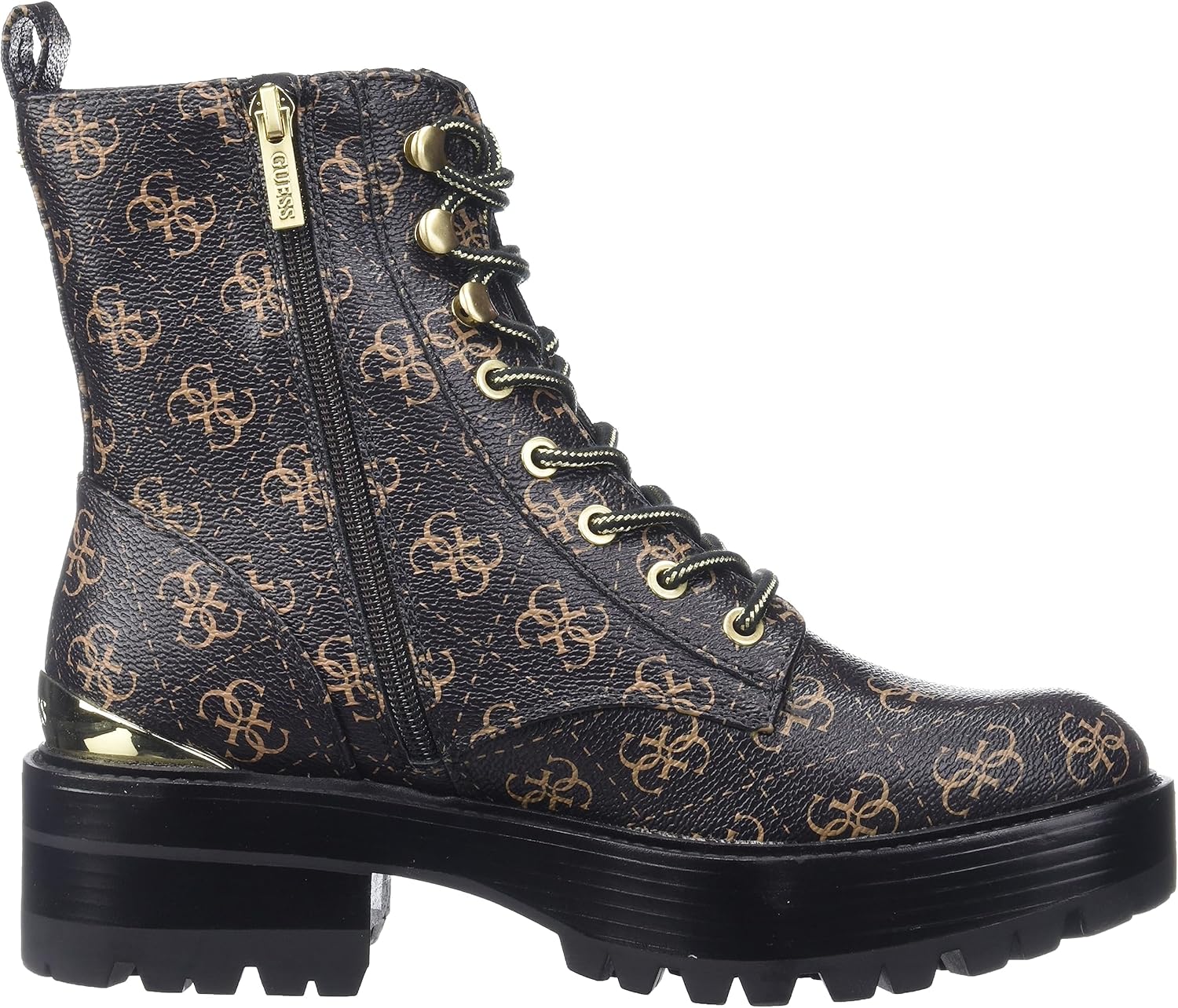 Ботильоны GUESS Fearne в энергичном стиле с массивной рифленой подошвой оснащены молниями с внутренней и внешней стороны, подчеркивающими модный шнуровочный стиль.