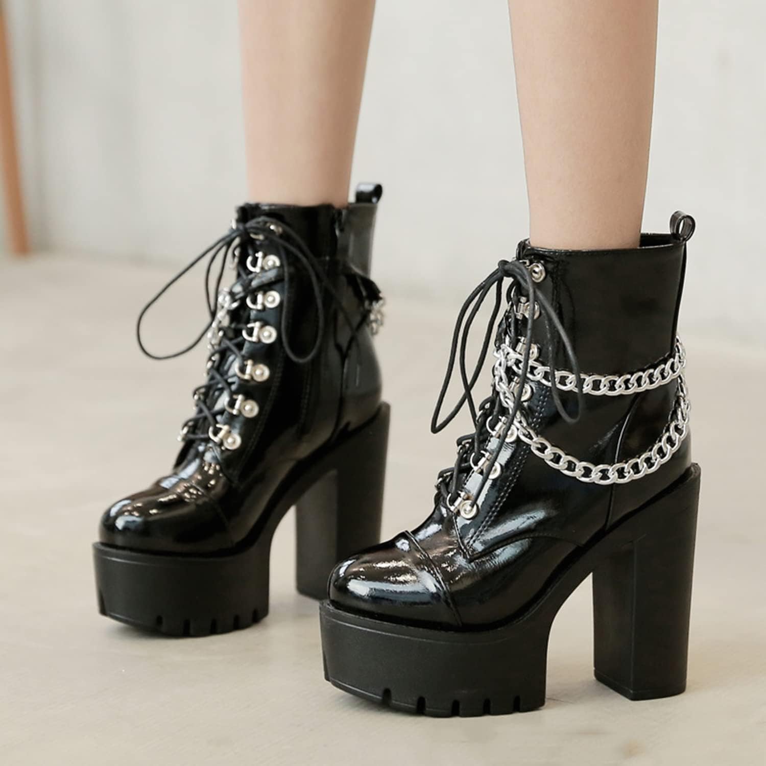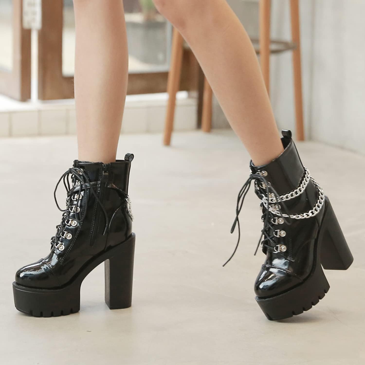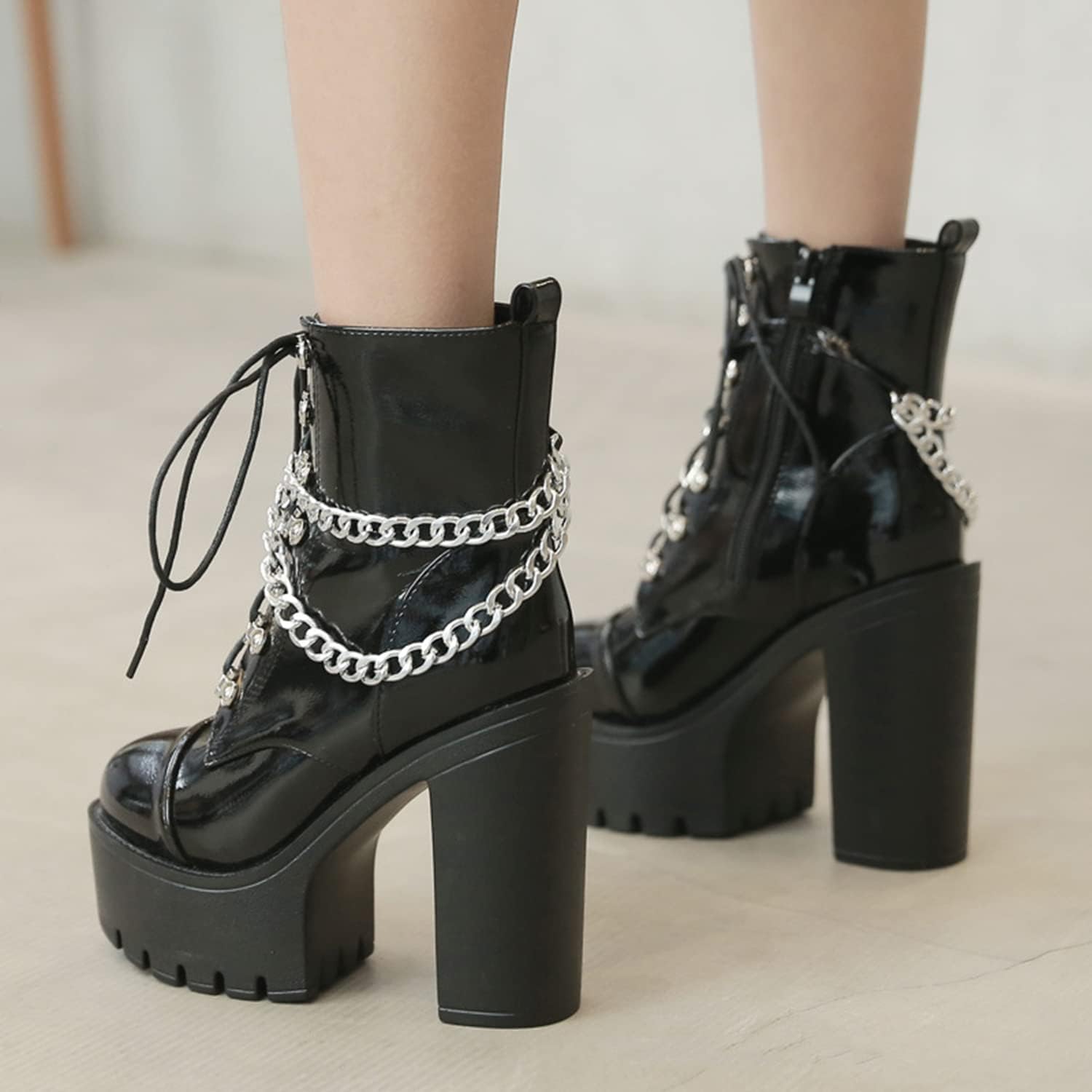 Особый дизайн: Готические ботинки на платформе с массивным высоким каблуком, платформой и боковой молнией для легкого надевания и снятия. Каждая пара обуви изготовлена из качественных материалов для максимального комфорта и долговечности, при этом сохраняя стиль.