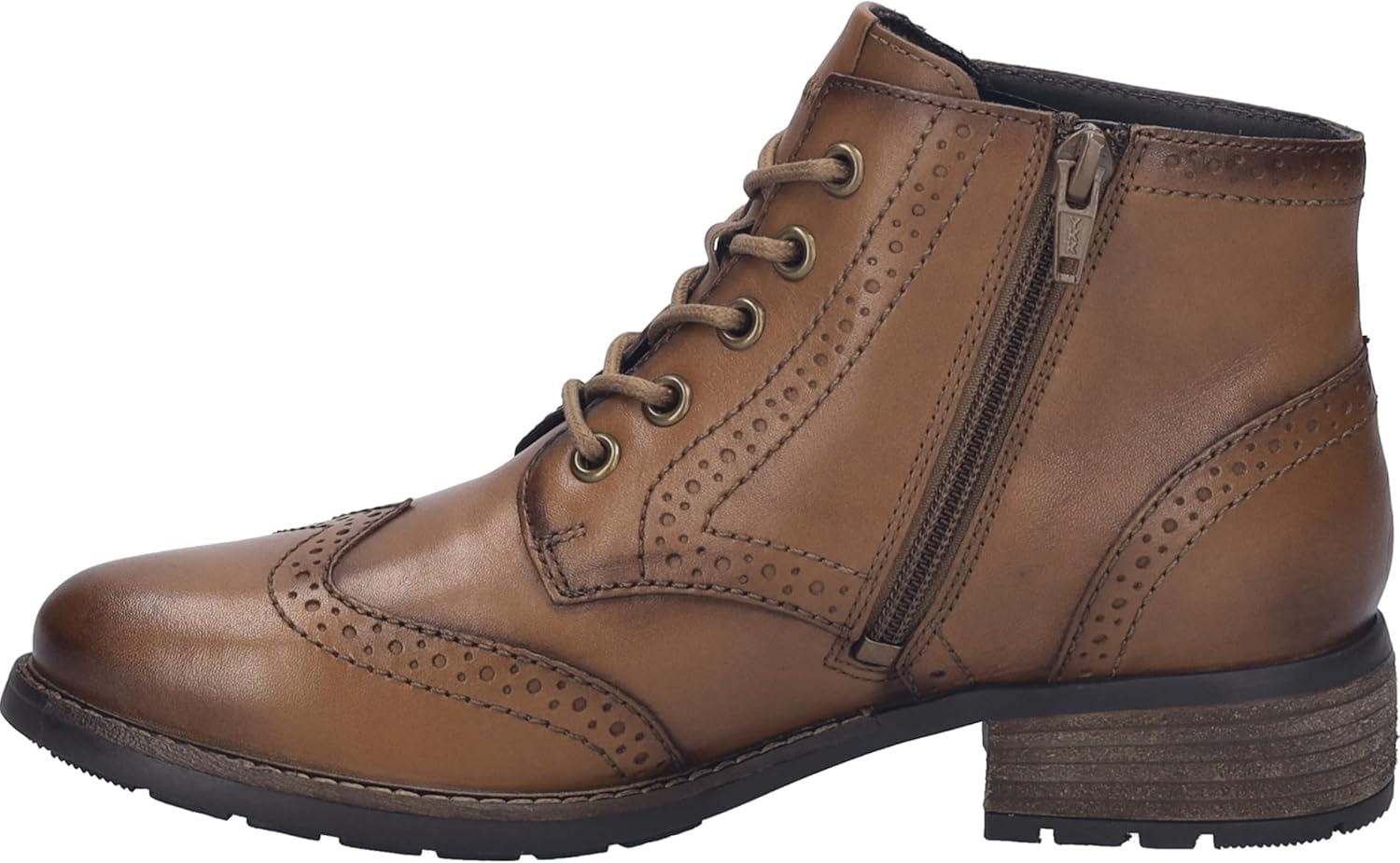 Ботинок Kate 11 в элегантном цвете коньяк - это шедевр от JOSEF SEIBEL, специально разработанный для женщин. Изготовленный из высококачественной кожи, он обеспечивает идеальную посадку и функциональность. Съемная внутренняя кожаная стелька позволяет использовать индивидуальные ортопедические стельки. Благодаря конструкции AGO обувь отличается легкостью и сохранением формы. Подошва TR обеспечивает отличное сцепление и долговечность. Идеально подходит для досуга и городской моды, надежно сопровождает вас в осенний сезон. Отличный пример устойчивой моды, сочетающий современный комфорт и вечную элегантность.