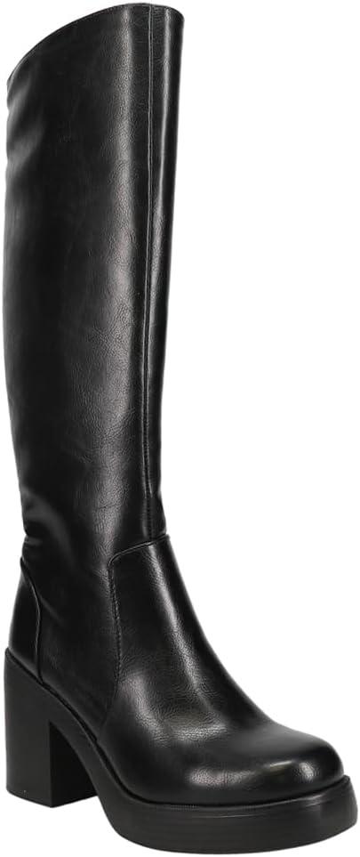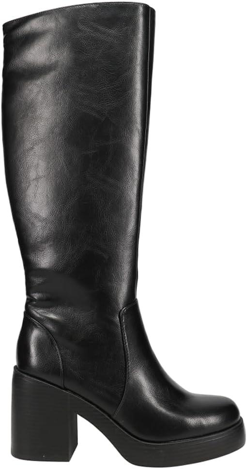 Толстая подошва и массивный каблук придают этим ботинкам на платформе до колена крутой стиль 90-х. Отлично смотрятся как с юбкой, так и с джинсами, эти туфли можно носить и днем, и вечером.