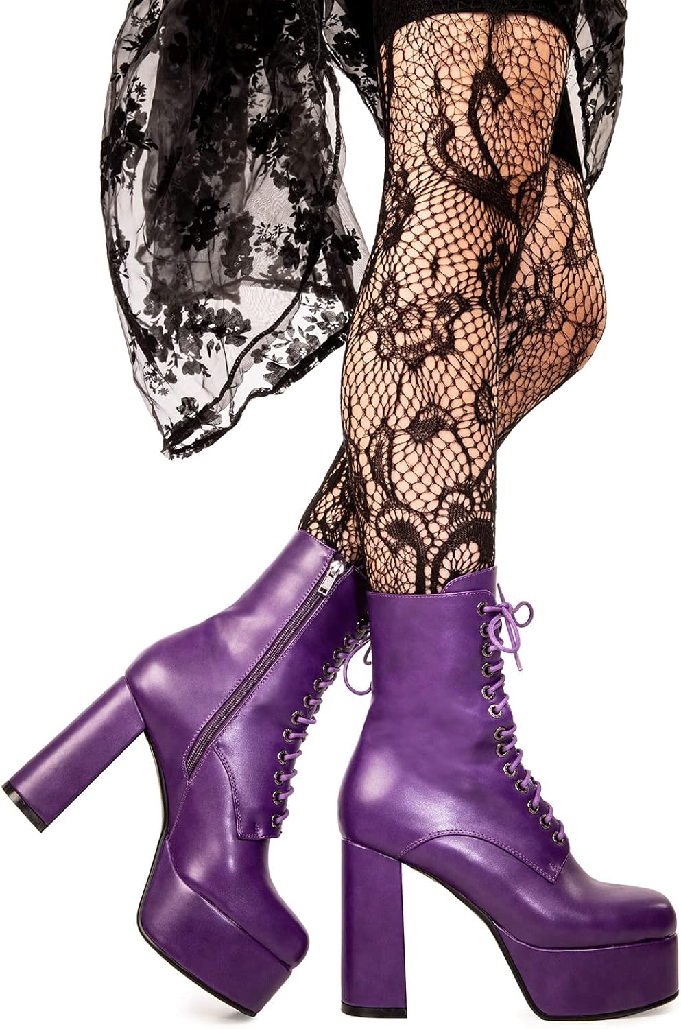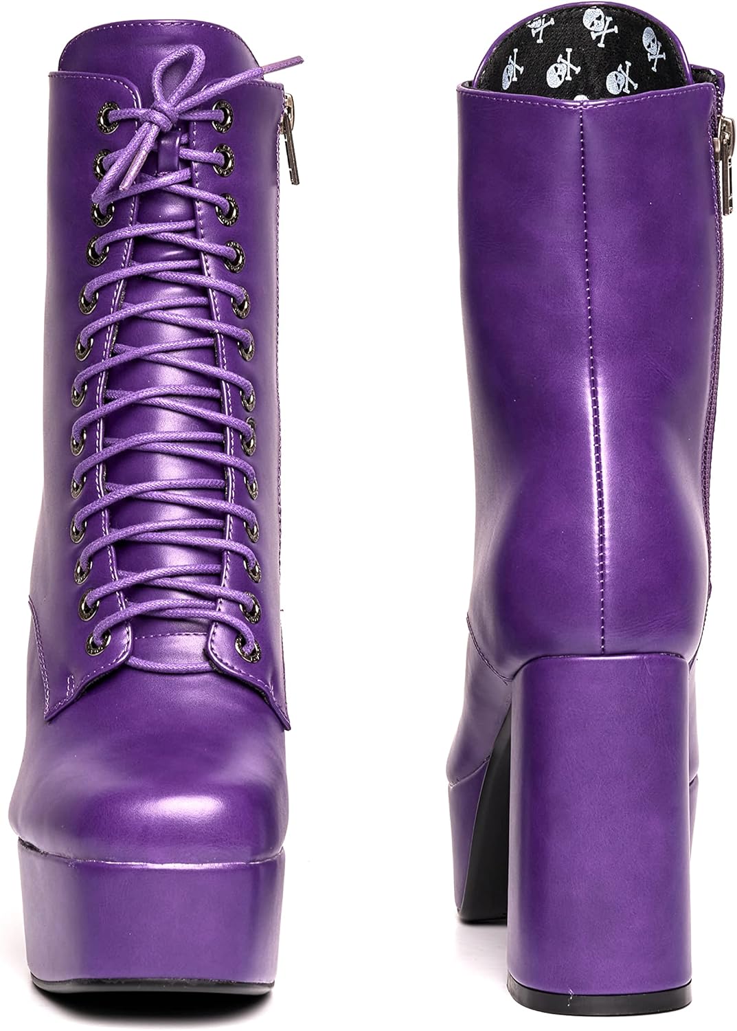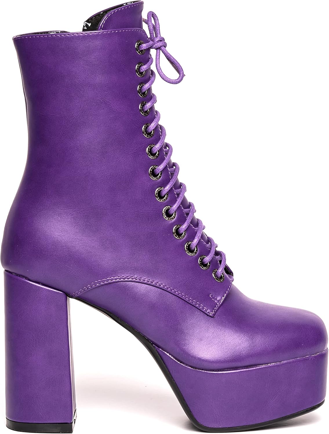 Платформенные ботинки Own It фиолетового цвета. Особенности включают регулируемую шнуровку с серебряными люверсами. Также есть функциональная молния с внутренней стороны ботинок. Все это на нашей массивной платформенной подошве.