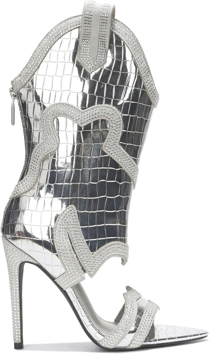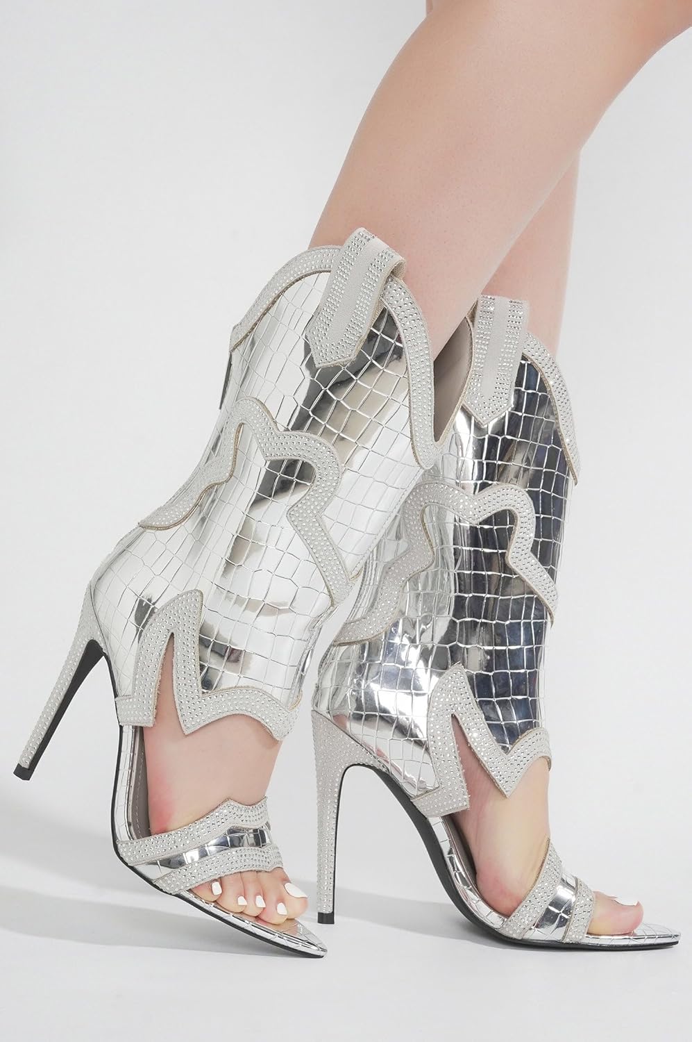 Тонкие высокие каблуки|открытый носок|вестерн-ботильоны|украшены стразами|застежка-молния