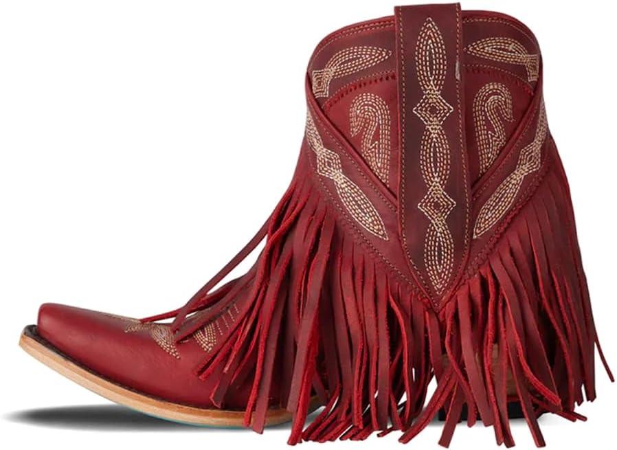 От родео до подиума - эти стильные бохо-вестерн ботильоны для ковбойшей готовы к любой ночи. Современный поворот традиционной вышивки в виде пламени и асимметричных деталей с бахромой. Необходимая вещь в вашем гардеробе: носите их с объемным свитером и свободной блузкой для повседневного образа или добавьте остроты для девичьей вечеринки с вашим любимым мини-платьем. Высота каблука: 4,5 см, высота голенища: 33 см, обхват верха: 36 см, обхват щиколотки: 30,5 см, форма носка: заостренная, фирменная бирюзовая подошва.