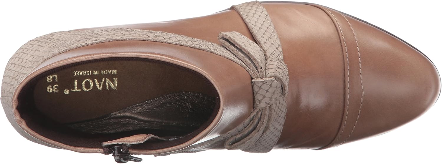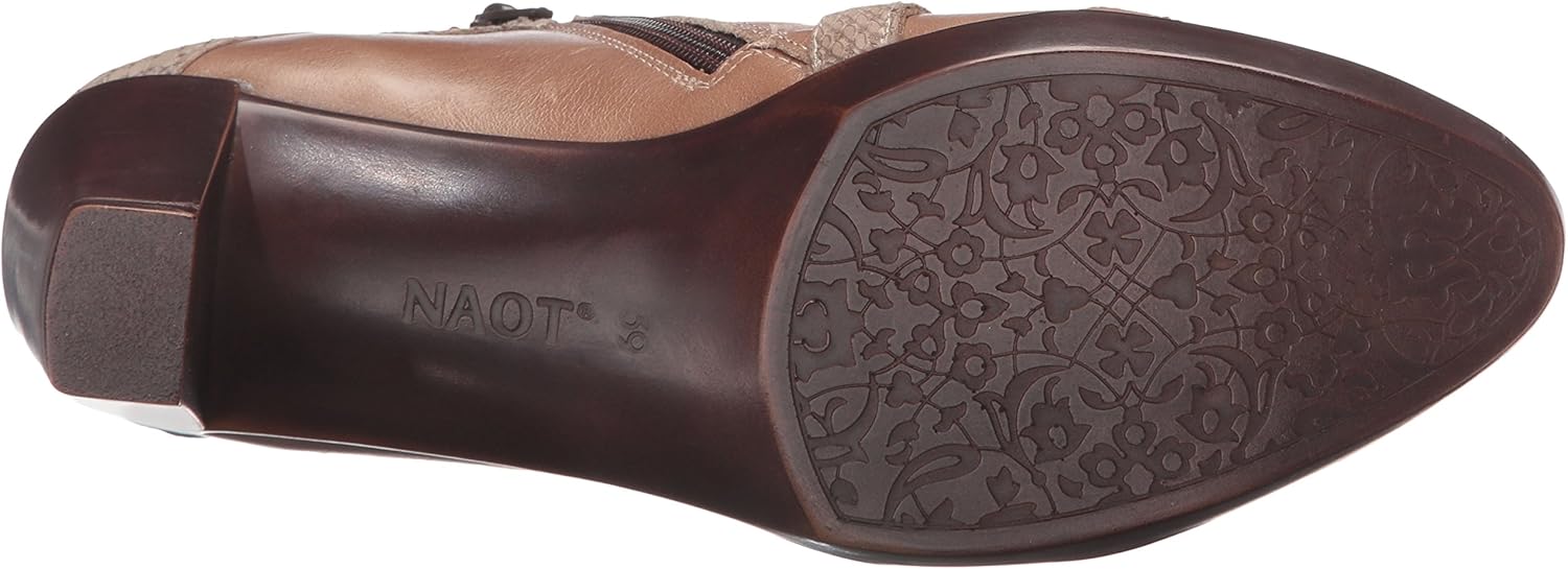 Боковая молния и декоративный кожаный бант сверху Подкладка голенища для дополнительного комфорта. Анатомическая стелька Naot из пробки и пенополиуретана с эффектом памяти обтянута кожей и микрофиброй, принимает форму стопы при носке Ручная строчка Strobel, делая обувь прочной и чрезвычайно гибкой Подошва из полиуретана с металлической планкой Модные ботильоны
