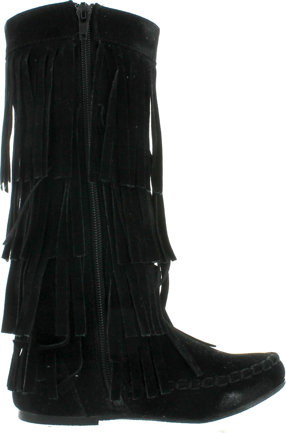 Я ЛЮБЛЮ ДЕТЕЙ-AVA-18K Девочки Ботинки до середины голени в стиле мокасин с трехслойной бахромой, боковая молния, закрытый заостренный носок, плоская резиновая подошва, мягкая внутренняя стелька.