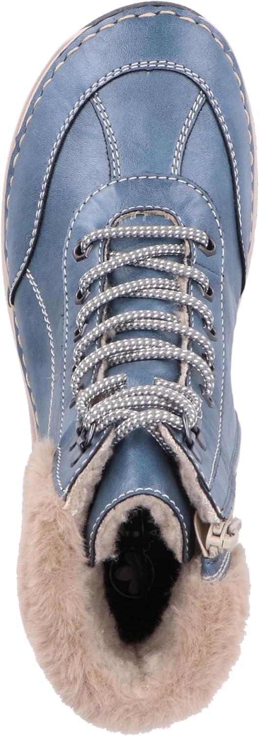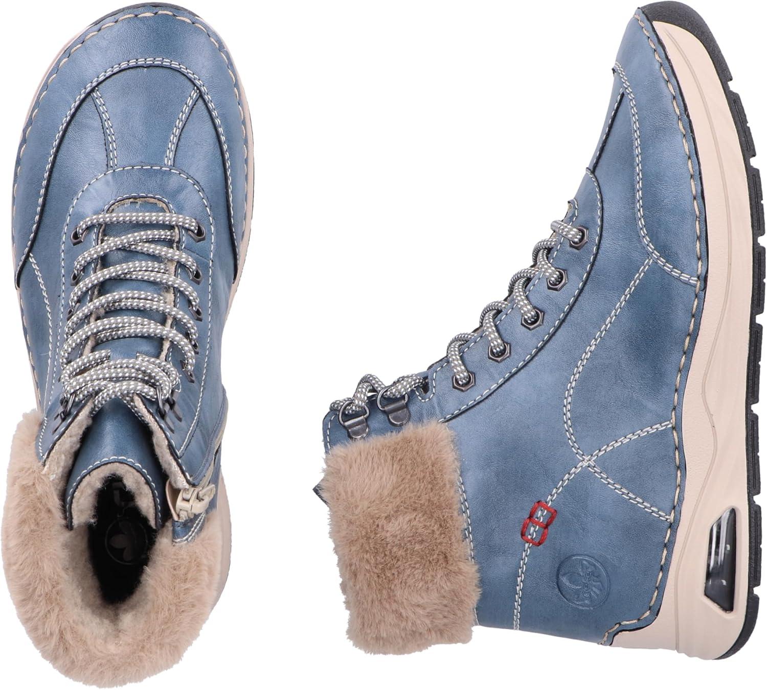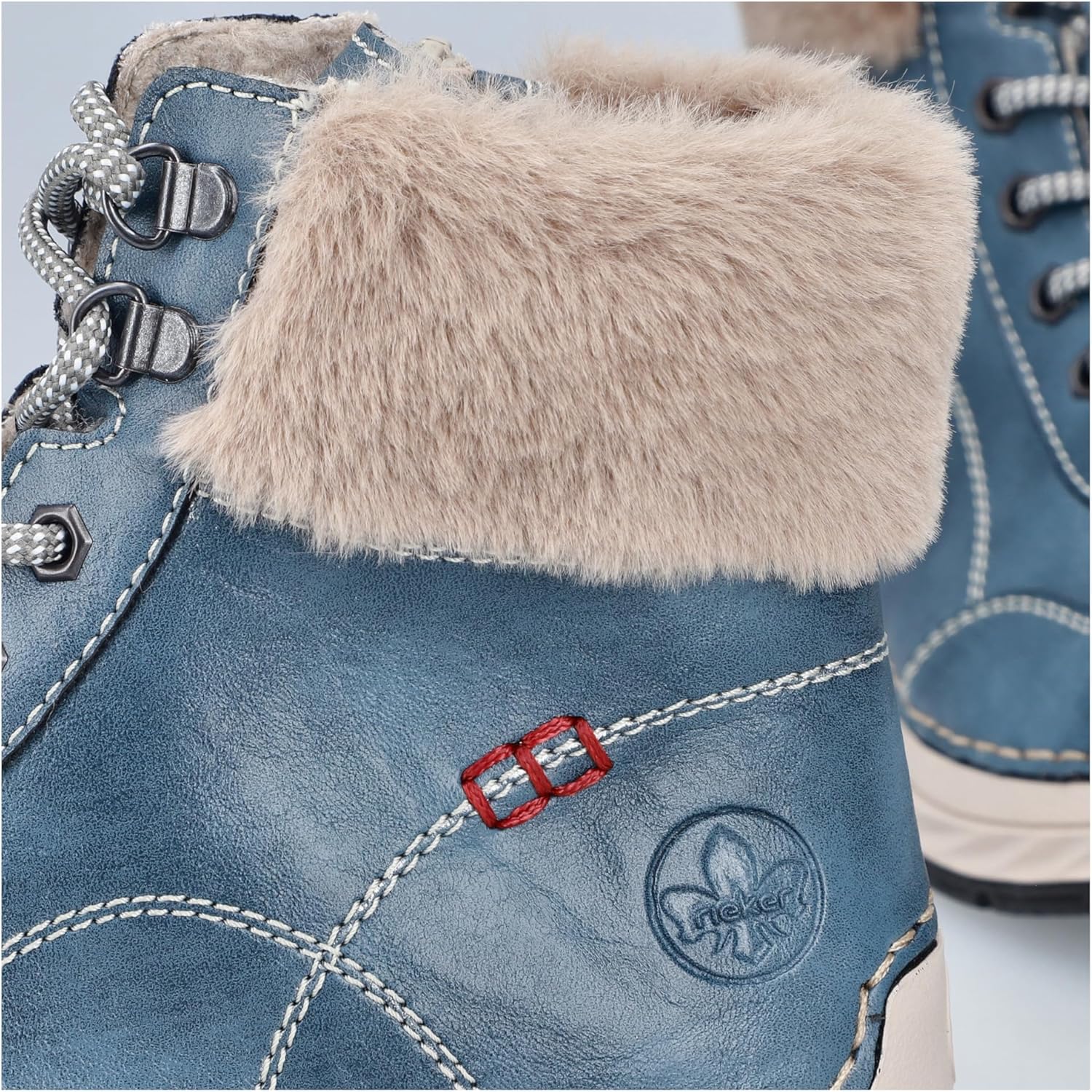 Холод вам не помеха! Эти сине-бежевые ботинки Rieker на шнуровке идеально подходят для повседневной носки. Благодаря плетеному дизайну обувь прочная, а подошва особенно гибкая. Умное сочетание шнуровки и молнии обеспечивает идеальную посадку и максимальное удержание стопы. Меховой воротник на голенище - симпатичная деталь. Легкая и амортизирующая подошва гарантирует комфортную посадку. Кроме того, стелька особенно мягкая. Окно Rieker Air в подошве придает свежий вид и обеспечивает амортизацию. Также с точки зрения комфорта, благодаря мягкой теплой подкладке, вы точно не ошибетесь с выбором. Хотелось - нашли!