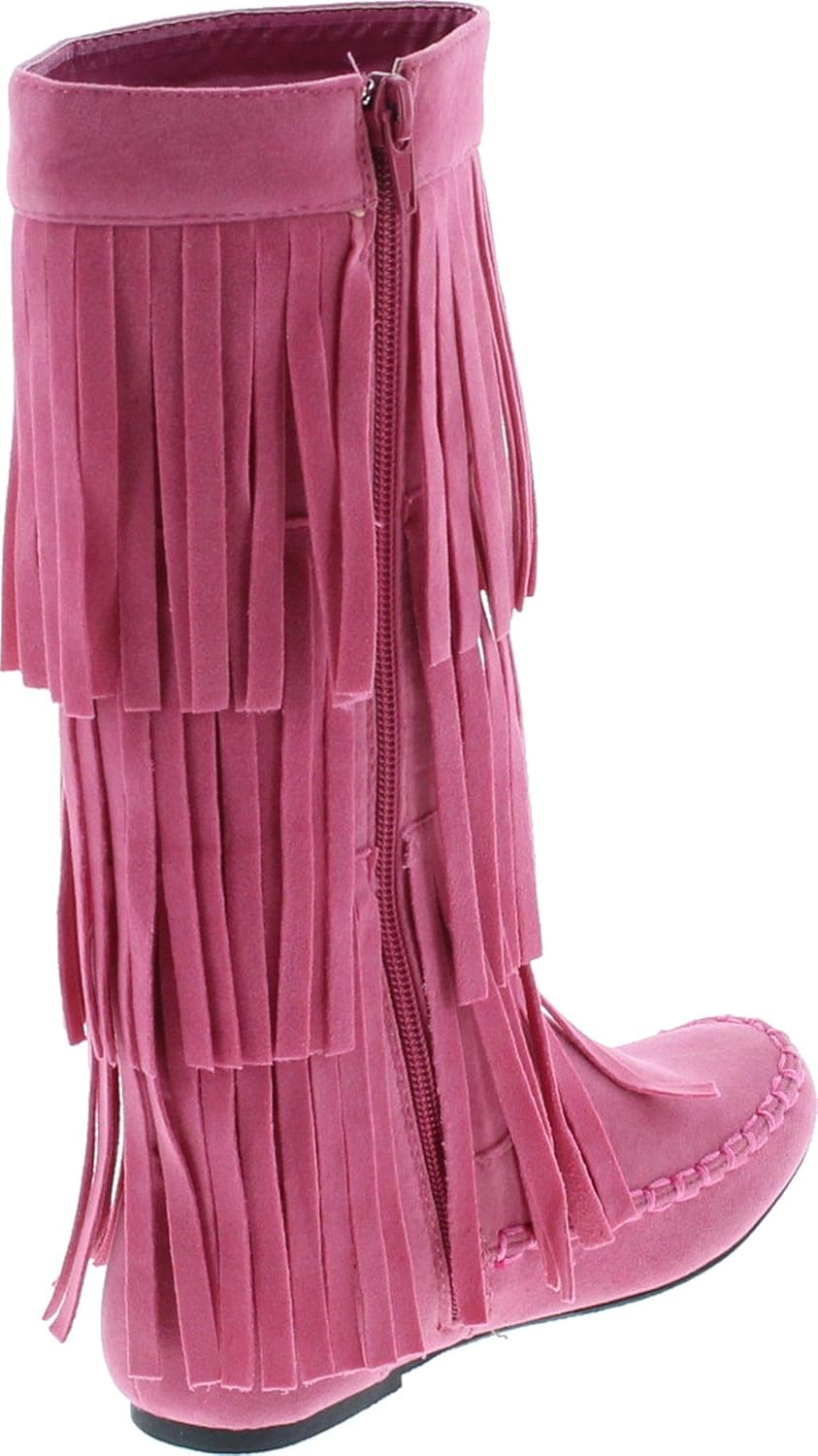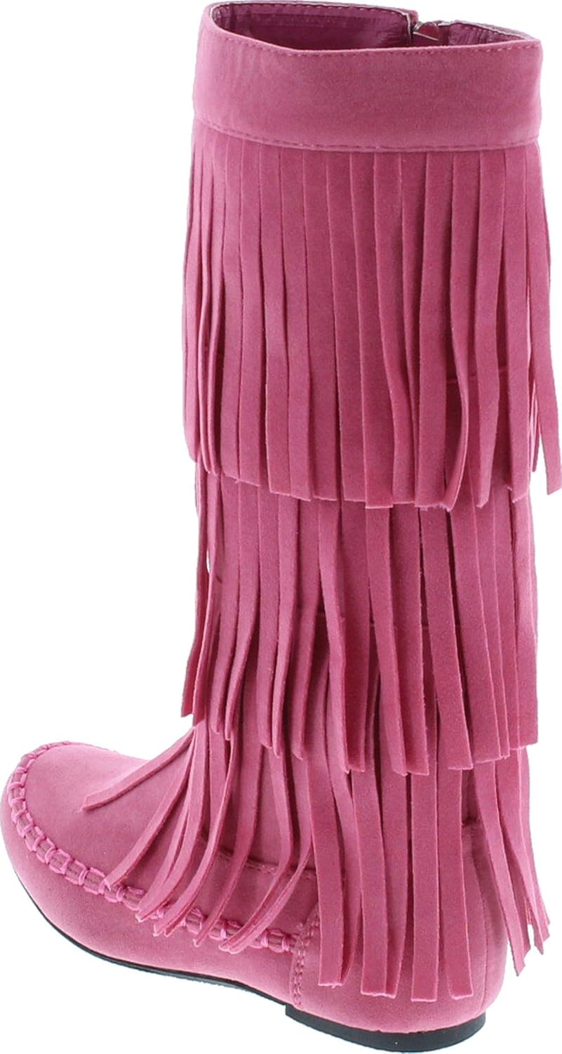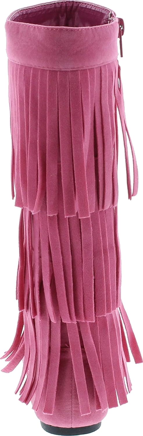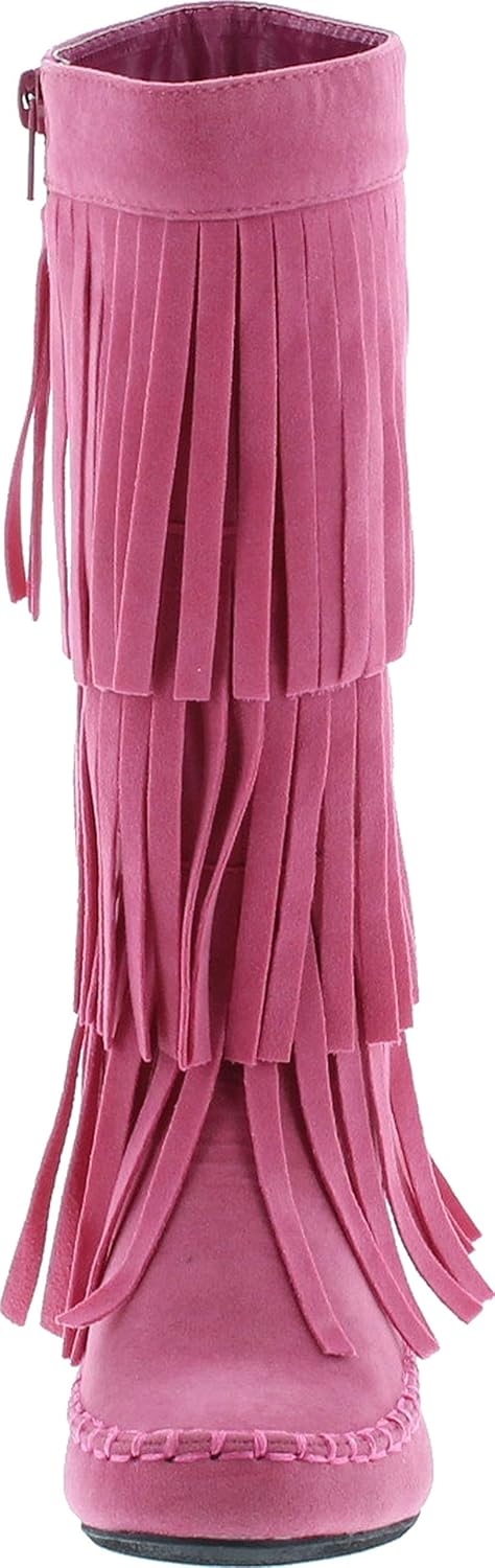 Я ЛЮБЛЮ ДЕТЕЙ-AVA-18K Девочки Ботинки до середины голени в стиле мокасин с трехслойной бахромой, боковая молния, закрытый заостренный носок, плоская резиновая подошва, мягкая внутренняя стелька.